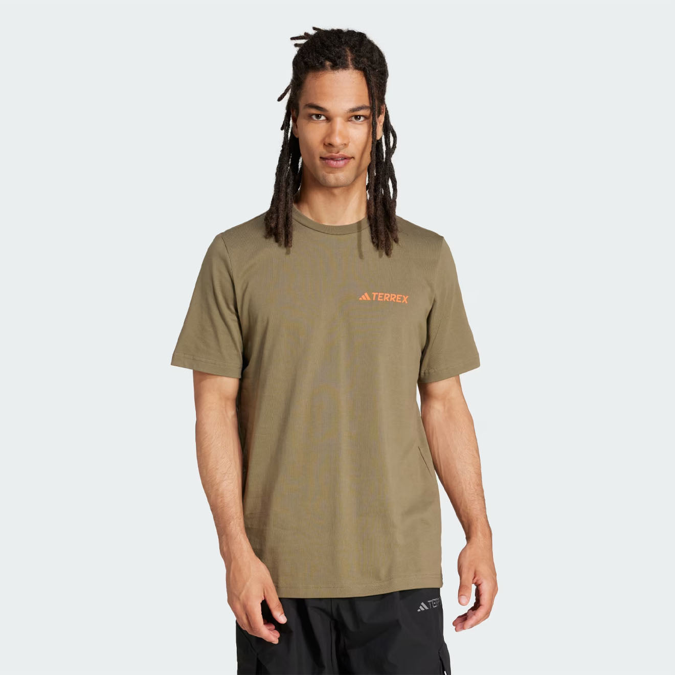 Normaler Preis €30,95Das Adidas Terrex Graphic T-Shirt in Olive Strata ist für Outdoor-Enthusiasten konzipiert, die Wert auf Komfort und Stil legen. Hergestellt aus leichtem Single-Jersey-Stoff bietet dieses T-Shirt eine bequeme Passform für den ganzen Tag. Es verfügt über eine markante Grafik auf dem Rücken, die Ihre Leidenschaft für Outdoor-Abenteuer unterstreicht und es zur idealen Wahl für Wandern, Trekking oder Freizeitausflüge macht. Genießen Sie Funktionalität und einen trendigen Look mit diesem vielseitigen T-Shirt.