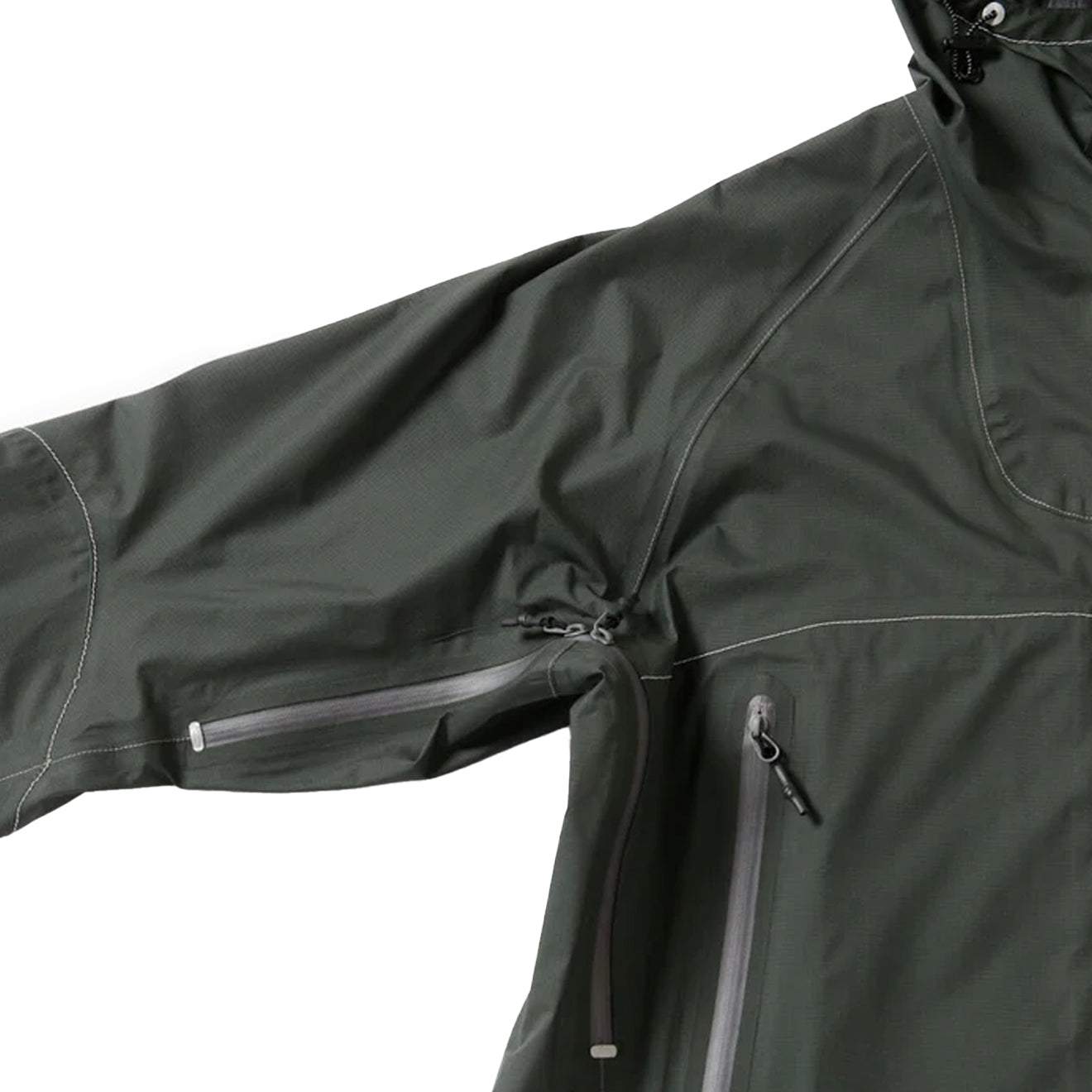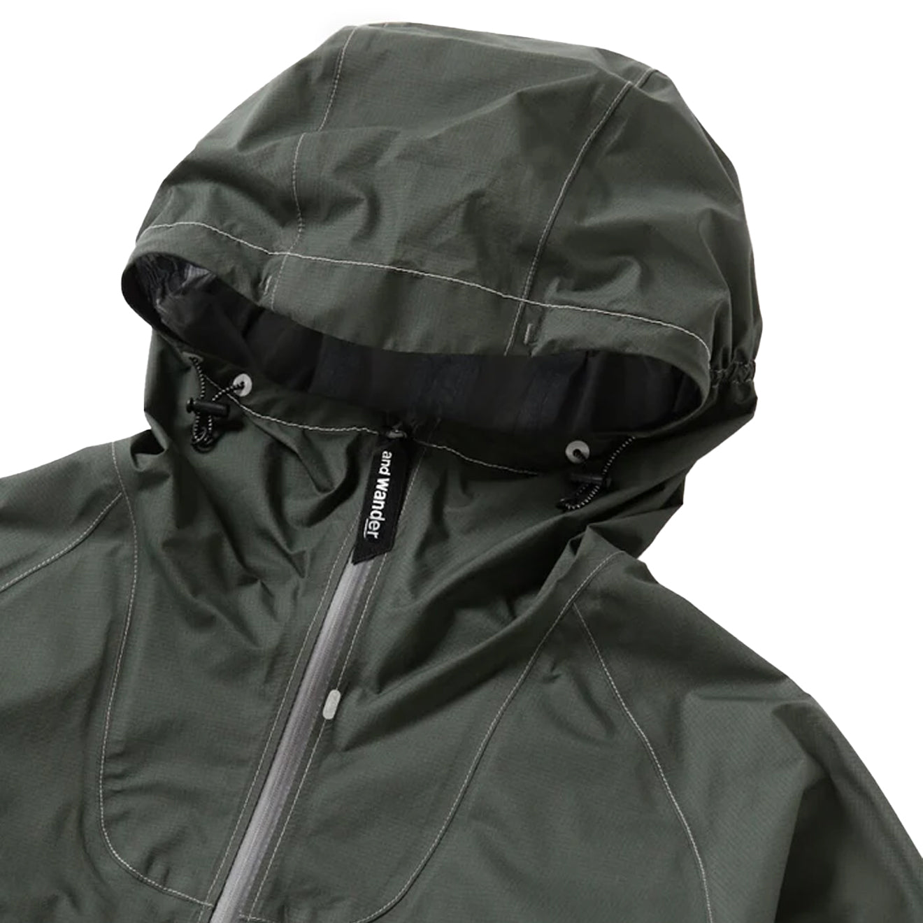Die And Wander 3L UL Regenjacke in Grün ist eine leichte, wetterfeste Außenjacke aus strapazierfähigem Pertex Shield Ripstop-Nylon mit PU-Beschichtung. Sie verfügt über Achselbelüftung, reflektierende Nähte für bessere Sichtbarkeit und lässt sich in der eigenen Tragetasche verstauen – ideal für rasante Abenteuer bei unvorhersehbarem Wetter.