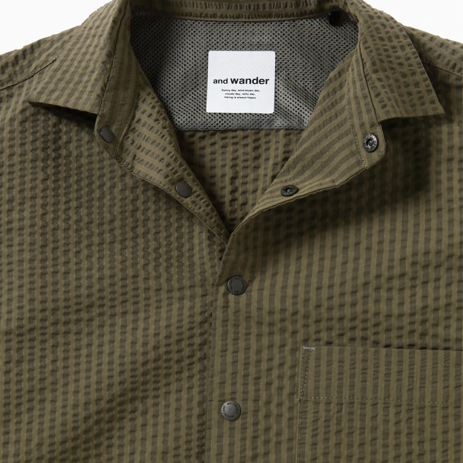Das Dry Soft Seersucker S/S Shirt von AND WONDER in Beige vereint raffinierte Schlichtheit mit dezenter Textur. Hergestellt aus funktionalem Seersucker-Stoff, verleihen das markante Streifenmuster und die ungleichmäßige Webart dem dezenten Design Tiefe. Die entspannte Silhouette sorgt für Komfort und verleiht gleichzeitig eine elegante, reife Ausstrahlung – perfekt für einen gepflegten und dennoch lässigen Look.