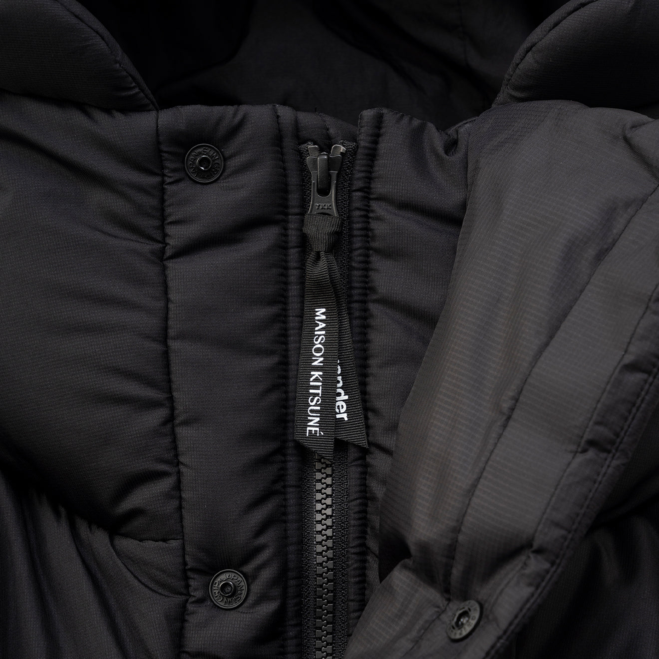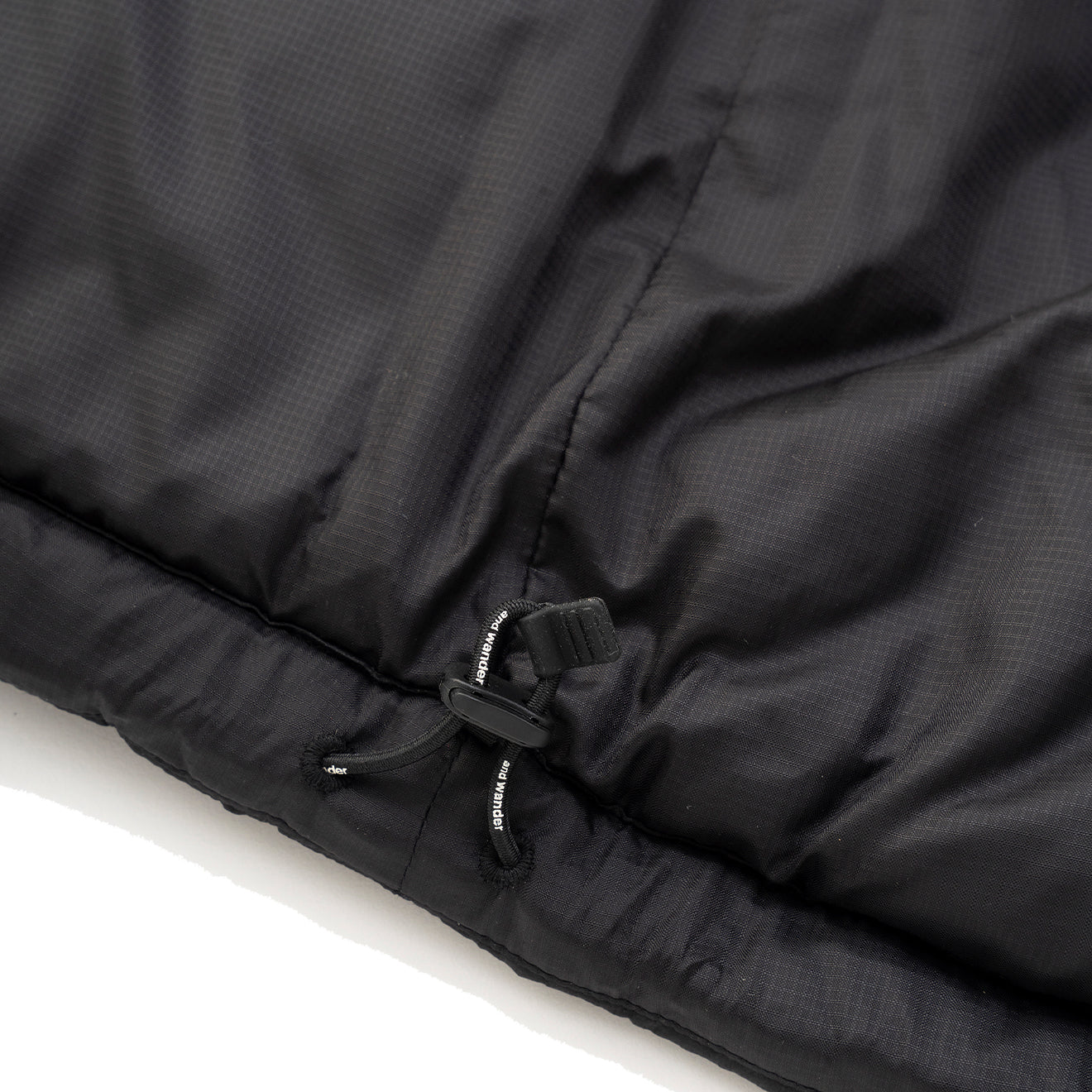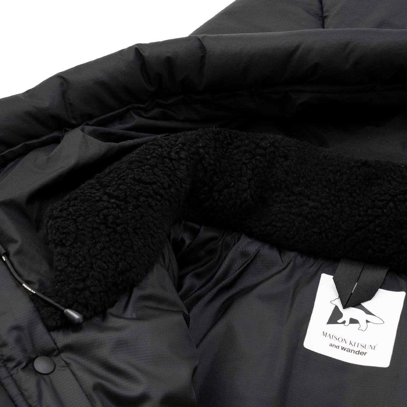 Kooperationsartikel von Maison Kitsune und Wander. Das dünne, wasserabweisende Micro-Ripstop-Gewebe aus 20-Denier-Kett- und Schussgarnen zeichnet sich durch sein geringes Gewicht und seine einzigartige Oberflächenstruktur aus. Es handelt sich um ein Isolationsprodukt mit PRIMALOFT BLACK in der Wattierung, das auch bei Nässe warm und atmungsaktiv bleibt und seine Haltbarkeit und Bauschkraft behält.