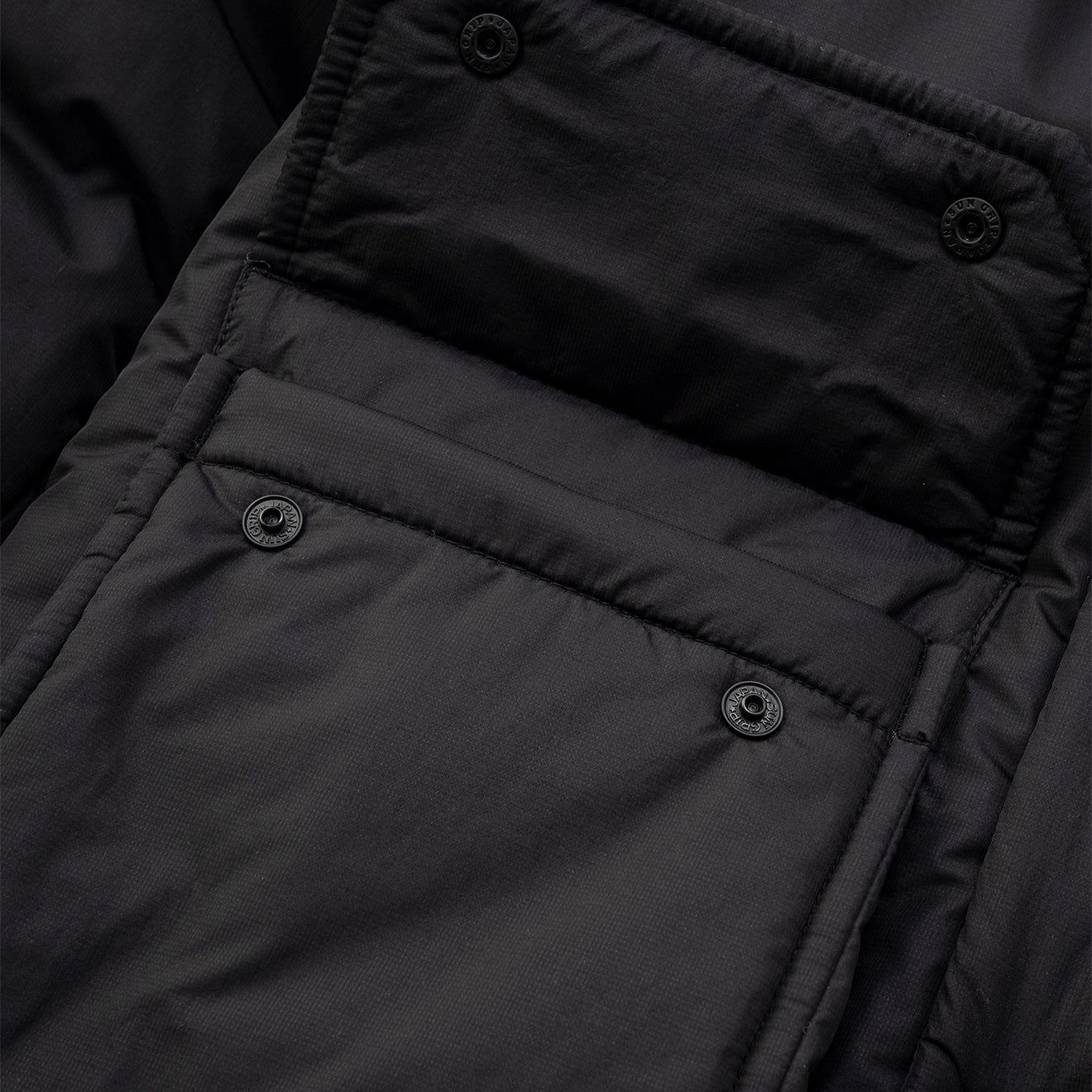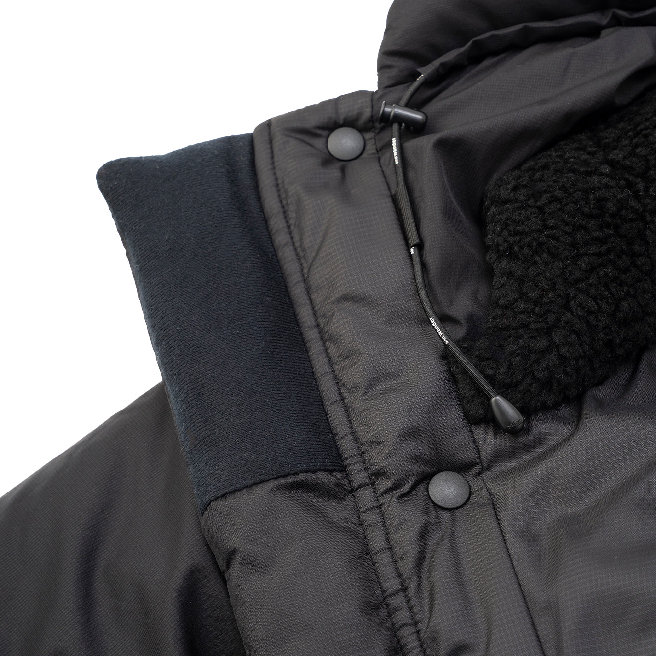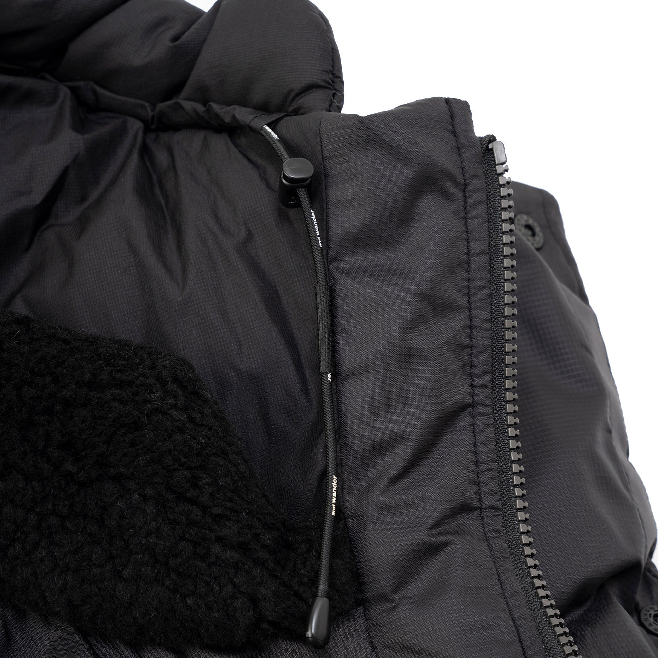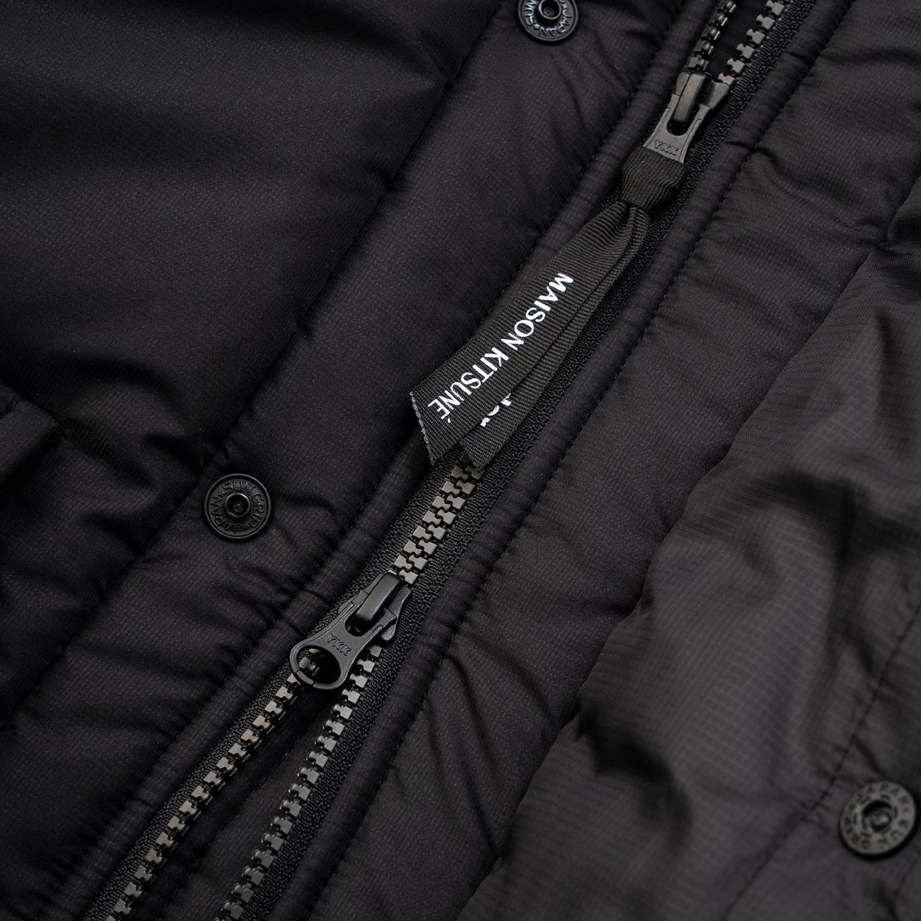 Kooperationsartikel von Maison Kitsune und Wander. Das dünne, wasserabweisende Micro-Ripstop-Gewebe aus 20-Denier-Kett- und Schussgarnen zeichnet sich durch sein geringes Gewicht und seine einzigartige Oberflächenstruktur aus. Es handelt sich um ein Isolationsprodukt mit PRIMALOFT BLACK in der Wattierung, das auch bei Nässe warm und atmungsaktiv bleibt und seine Haltbarkeit und Bauschkraft behält.