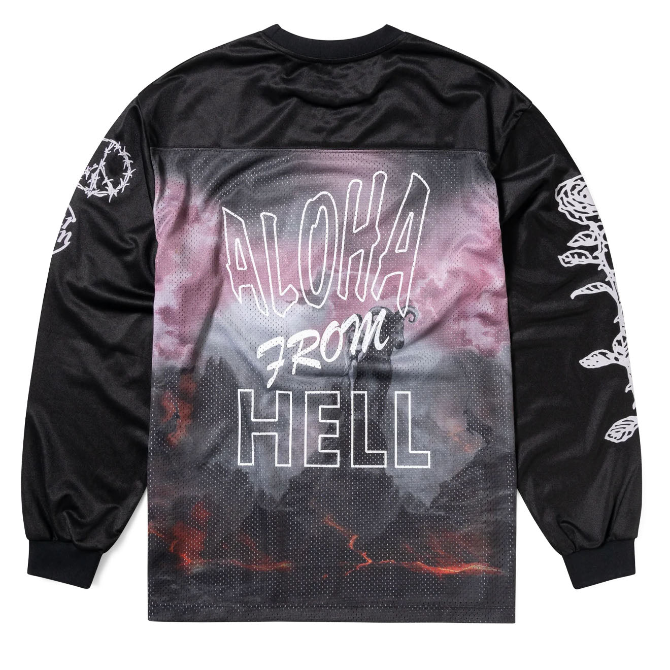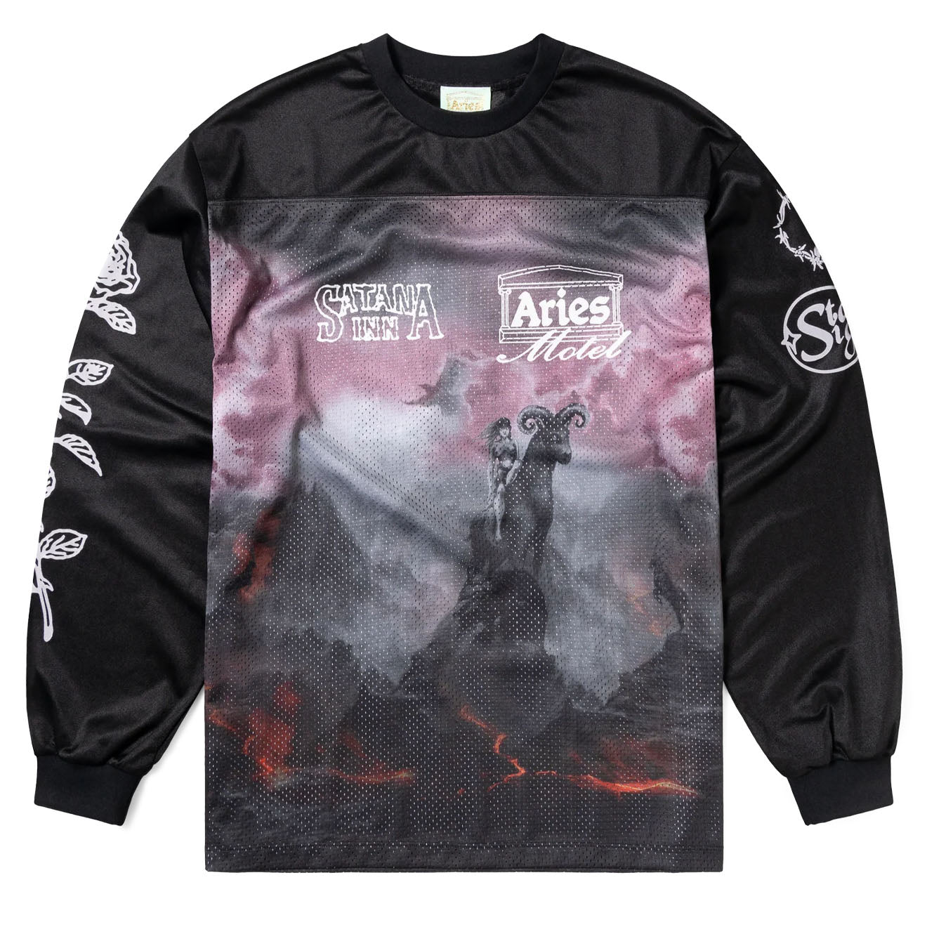 Normaler Preis €193,95 €122,95 Sparen 35% SonderpreisDas Aries Ramscape Airtex LS Tee in Schwarz ist ein lässiges, langärmliges Fußballtrikot mit einem RAMSCAPE-Aufdruck auf Airtex-Mesh, kombiniert mit einfarbigen schwarzen Einsätzen und einzigartigen grafischen Siebdrucken. Hergestellt in Portugal.