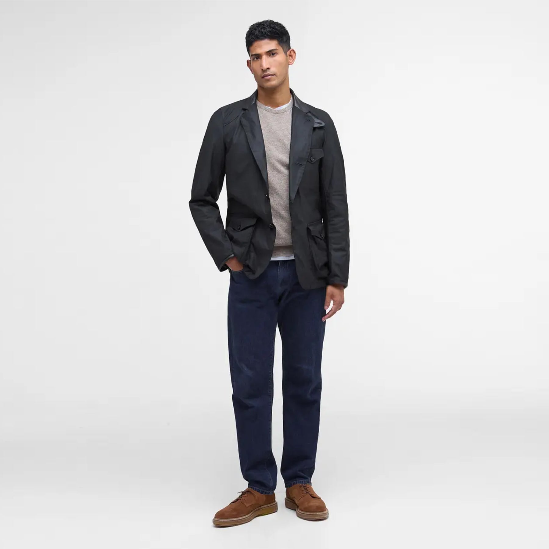 Diese Slim-Fit-Jacke kaufen Sie am besten in der nächstgrößeren Größe. Es handelt sich um eine gewachste Beacon Sports Jacke mit drei Taschen, eine moderne Interpretation der limitierten To Ki To Sports Jacke. Das mittelschwere, gewachste Baumwollstück hat weiche Lederkanten, Schulter-/Ellbogenpatches, zwei Rückenreißverschlüsse und einen Knopf mit Kragenklappe. Es ist mit Schottenkaro gefüttert und verfügt über hüfthohe Blasebalgtaschen und eine Brusttasche. Tragen Sie es als Blazer mit offenem Kragen und Revers oder mit Rollkragen über Strick und Schal. Vielseitig und stilvoll.