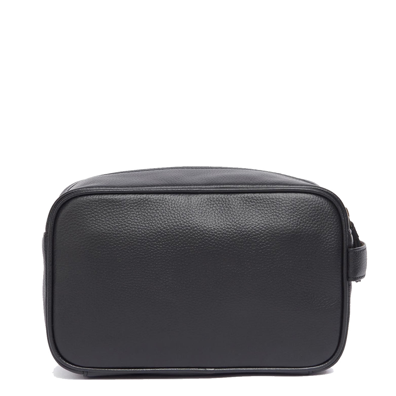– Kulturbeutel aus Leder mit geprägtem Logo, klassisches Schwarz