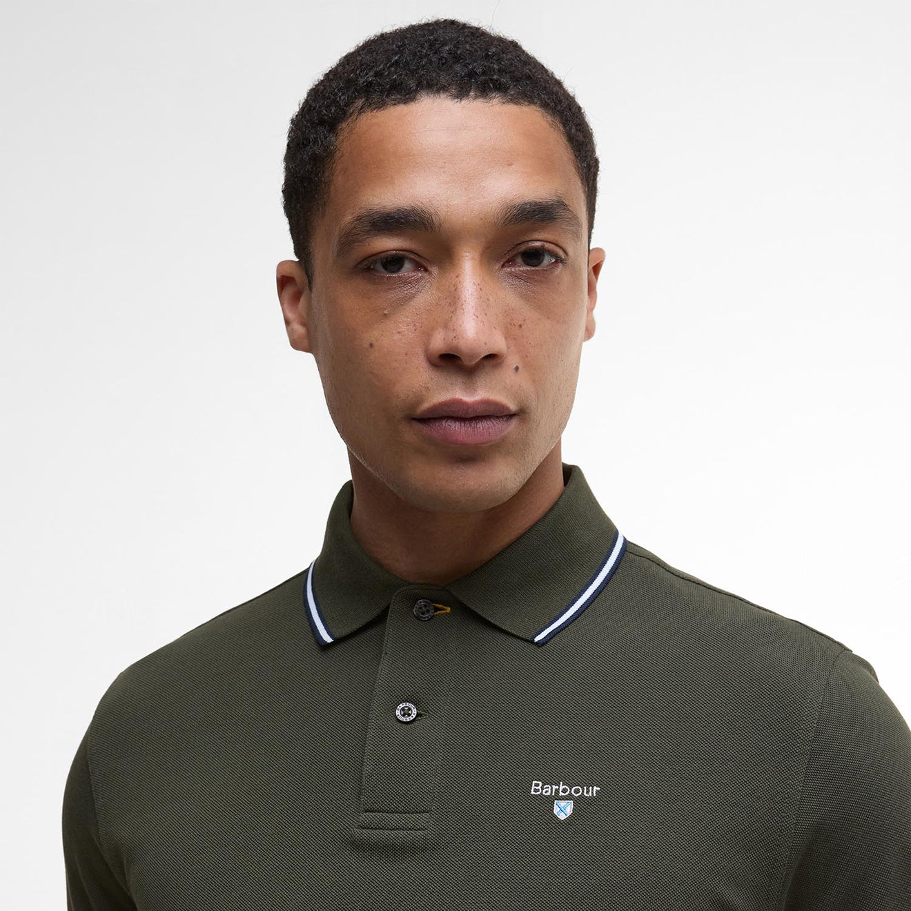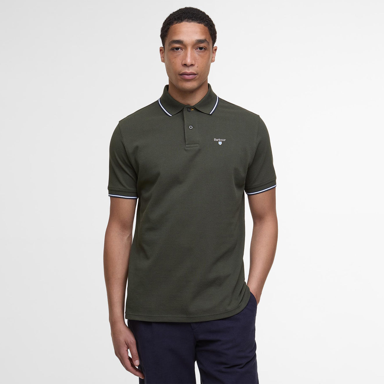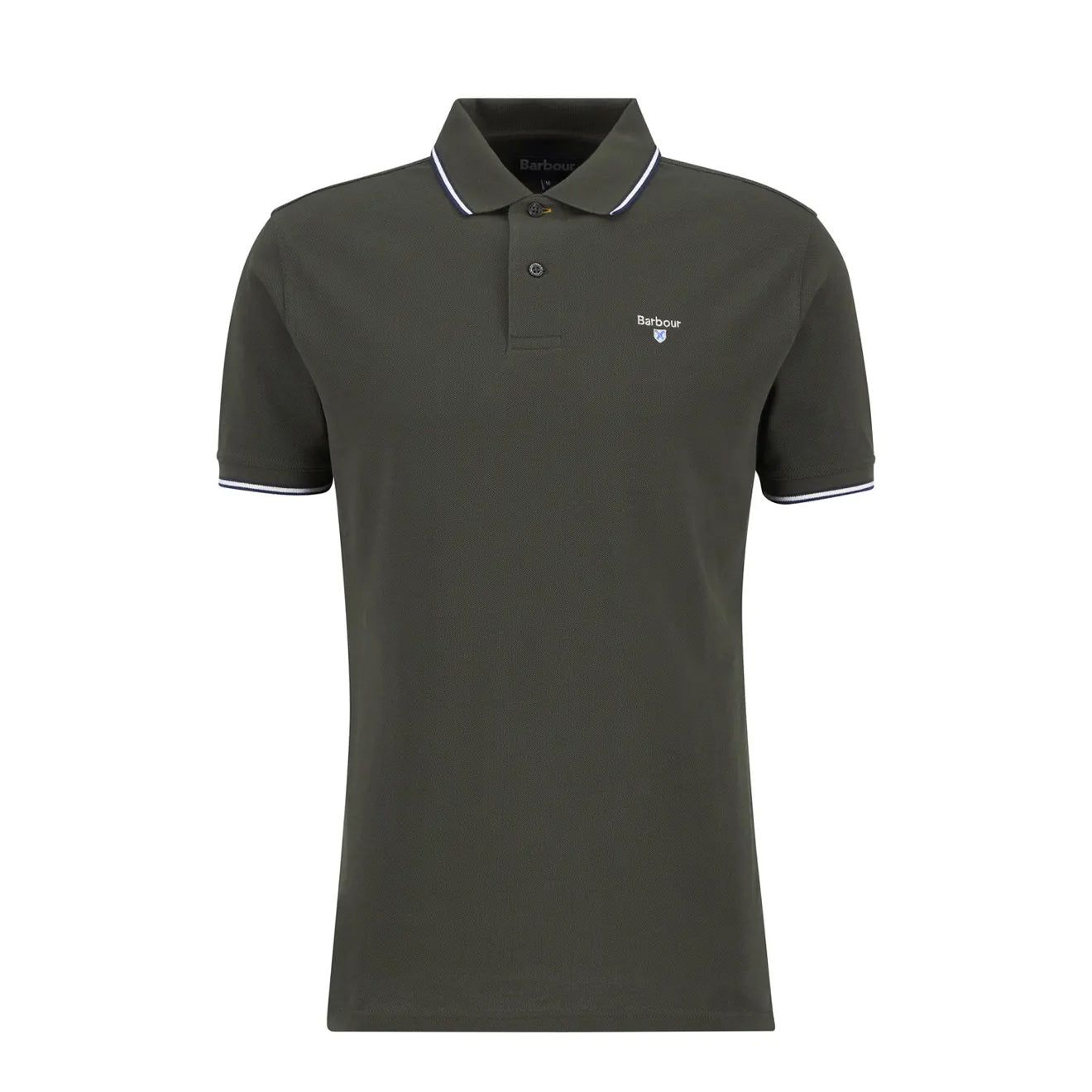 Normaler Preis €58,95Das Barbour Fielding Tailored Poloshirt in Olivgrün besteht aus 100 % Piqué-Baumwolle. Es hat einen gekippten Kragen und Ärmelbündchen mit Kontrastdetails, während das Barbour-Wappen auf der Brust aufgestickt ist.