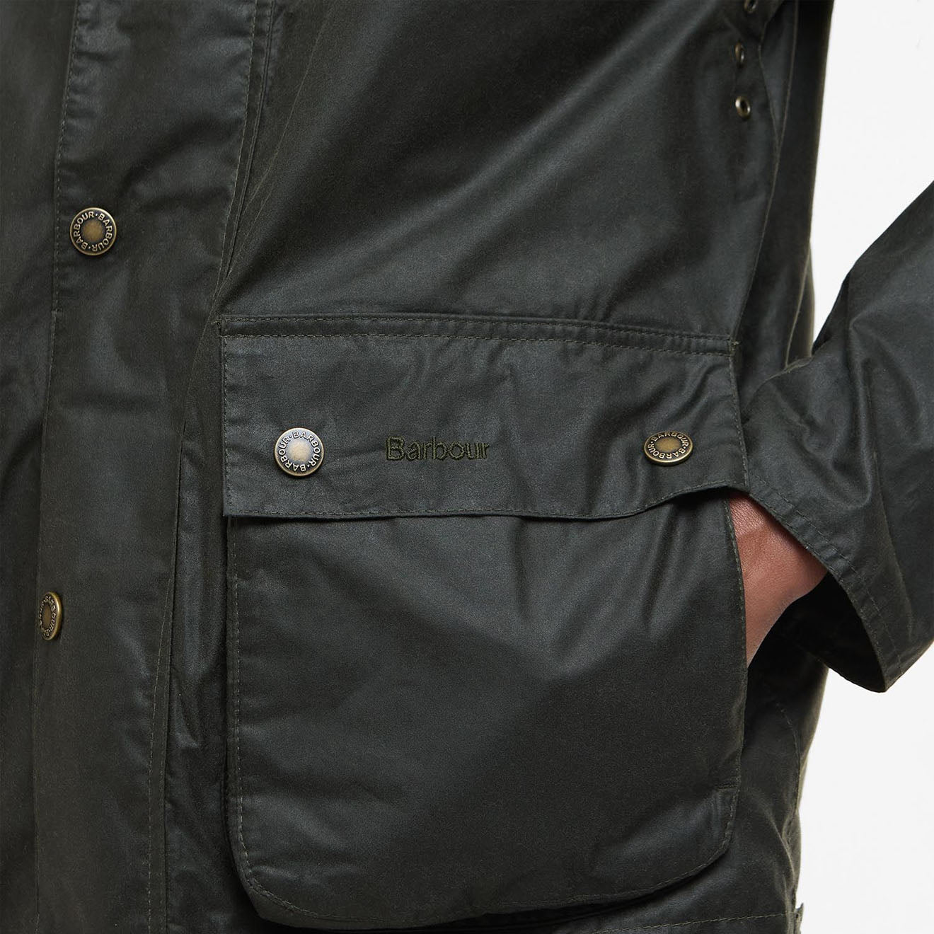 Die Barbour Modern Bedale Wax Jacket in Archive Olive interpretiert das zeitlose Design neu und präsentiert sich mit einer kürzeren, kastenförmigeren Silhouette als moderne Interpretation des Traditionellen. Das elegante Design verfügt über zwei Leistentaschen und einen kontrastierenden Kordelkragen.