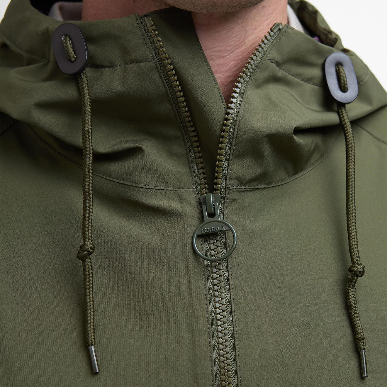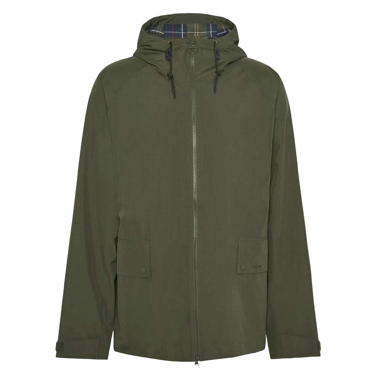 - Barbour-Stickerei auf der vorderen Taschenklappe und großes braunes Lederabzeichen im Nacken.