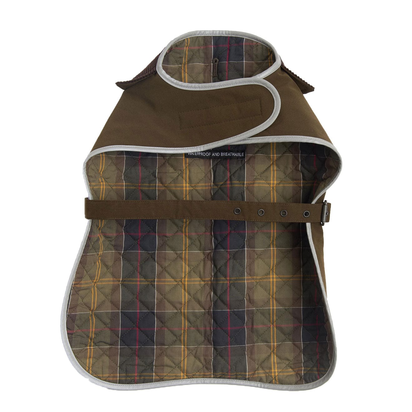 Normaler Preis €64,95Der wasserdichte Hundemantel von Barbour in Oliv hält Ihren Hund bei langen Spaziergängen trocken. Er verfügt über einen reflektierenden Besatz für bessere Sichtbarkeit und ein Schottenkaro-Futter für einen stilvollen Look. Der Mantel ist mit einem Kordelkragen und einem geprägten Barbour-Abzeichen versehen. Zusätzlich bietet er eine Schlüssellochöffnung für einfachen Zugang zum Geschirr und sorgt so für Komfort und Sicherheit Ihres Haustieres.
