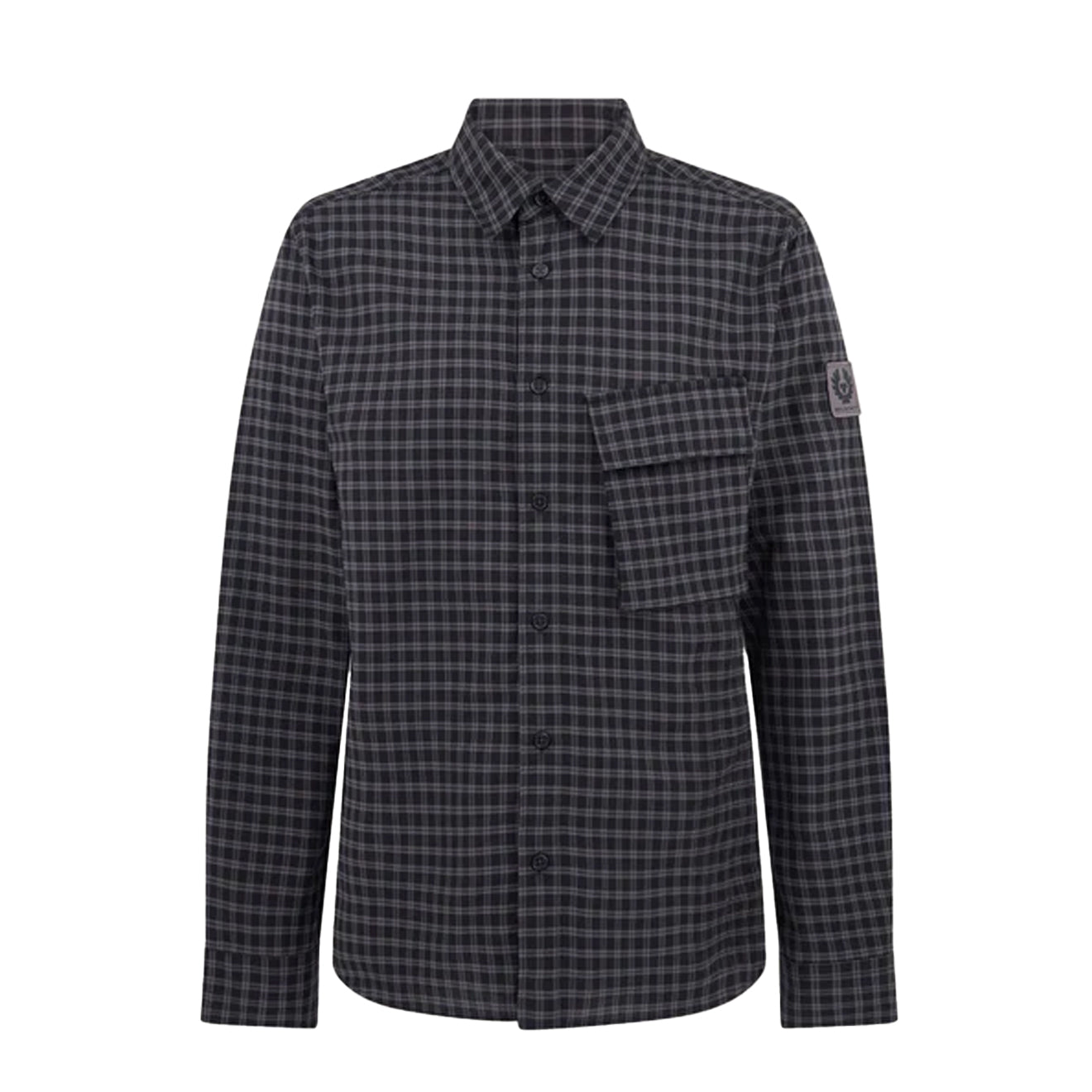 Normaler Preis €181,95Das Belstaff Scale Hemd in Schwarz / Tornadograu ist ein elegantes Basic für den Smart-Casual-Look. Es wird in Portugal aus strukturierter, garngefärbter, gebürsteter Baumwolle gefertigt. Dieses karierte Hemd vereint robusten Stil mit hochwertiger Verarbeitung und besticht durch charakteristische Details wie die schräge Blasebalg-Brusttasche und den farblich abgestimmten, gestickten Phönix-Aufnäher am Ärmel.