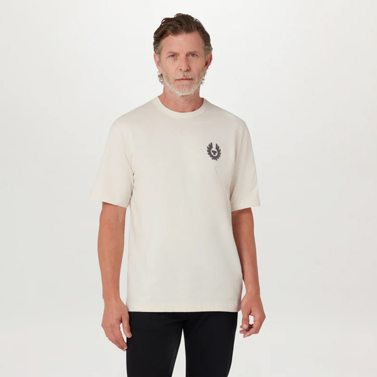 Normaler Preis €82,95Das Belstaff Shadow T-Shirt in Silver Birch ist ein Must-have für Ihre Garderobe. Hergestellt aus 100 % BCI-Baumwolljersey. Mit Belstaff-Logo auf Brust und Rücken. Ideal für den Lagenlook im Winter und vielseitig genug für das ganze Jahr.