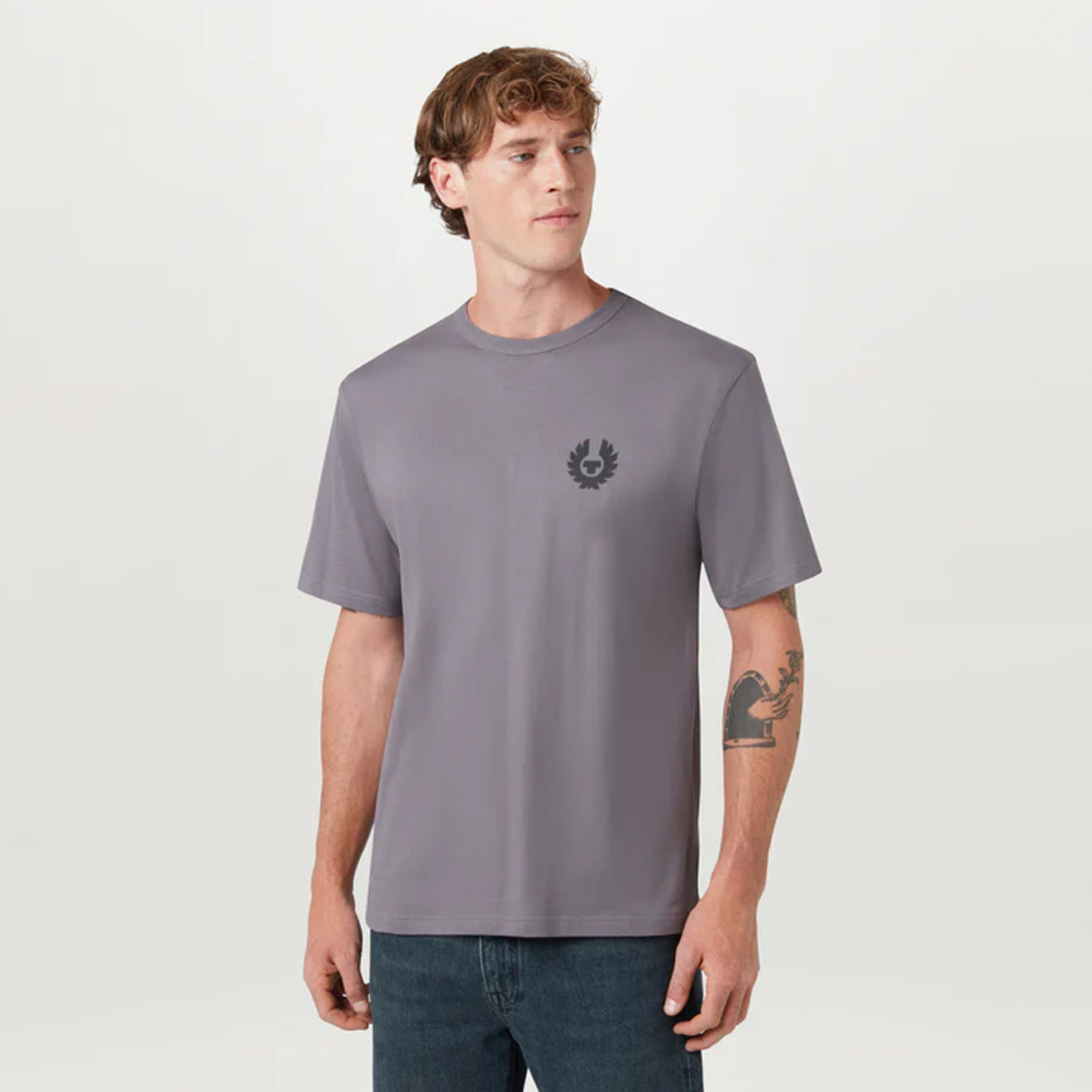 Normaler Preis €82,95Das Belstaff Shadow T-Shirt in Tornadograu ist ein Must-have für Ihre Garderobe. Hergestellt aus 100 % BCI-Baumwolljersey. Mit Belstaff-Logo auf Brust und Rücken. Ideal für den Winter und vielseitig genug für das ganze Jahr.