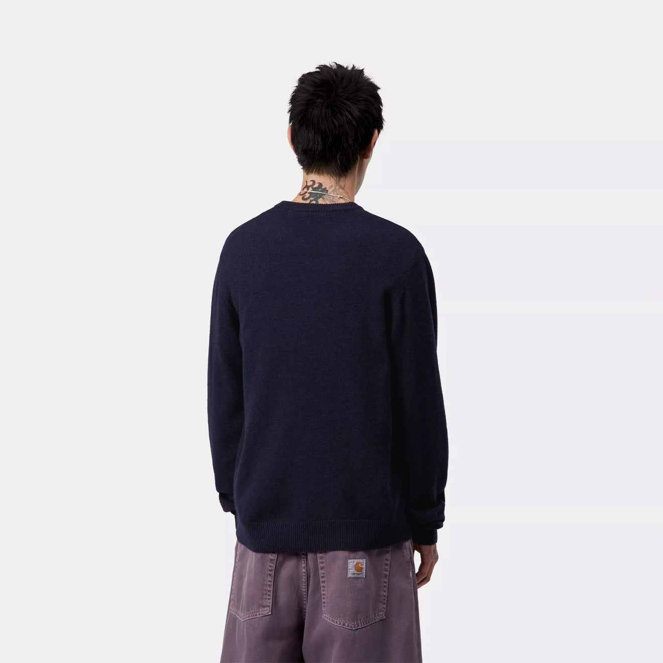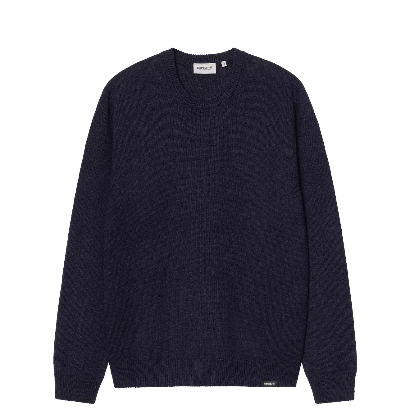 Normaler Preis €140,95Der Carhartt WIP Alten Sweater in Deep Night verfügt über ein gewebtes Script-Label am unteren Bund für ein dezentes Markendetail. Dieser mittelschwere Strickpullover besteht aus einer Wollmischung.