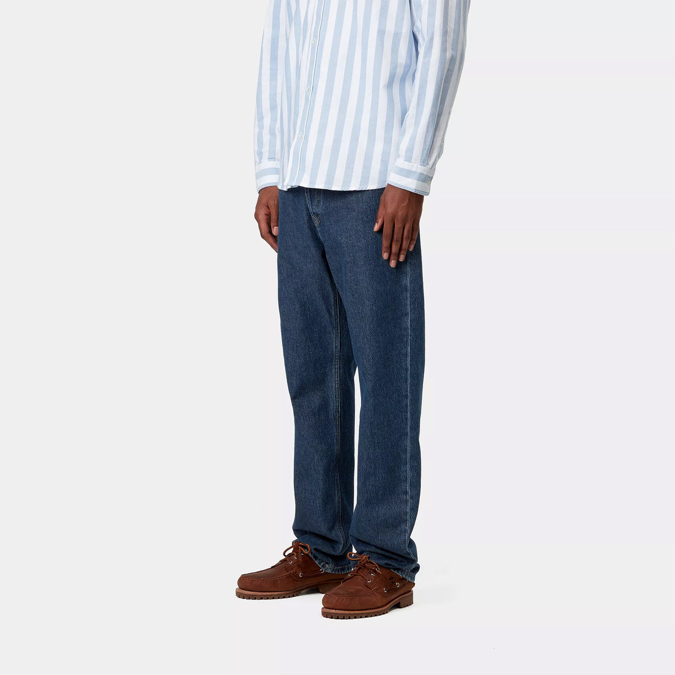 Die Carhartt WIP Nolan Pant in Blue Heavy Stone Wash ist aus schwerem Baumwoll-Denim gefertigt und sorgt so für lange Haltbarkeit. Mit entspannter, gerader Passform und normaler Taille bietet sie eine klassische Five-Pocket-Silhouette.