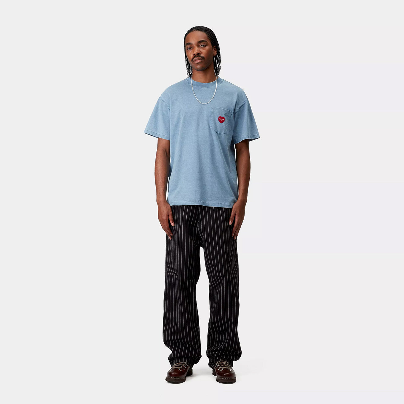 Normaler Preis €76,95Das Carhartt WIP S/S Ingo Pocket T-Shirt in Hellblau im stückgefärbten Design hat eine entspannte Passform und ist aus weicher, mittelschwerer Baumwolle in hellblauem, stückgefärbtem Farbton gefertigt. Die Brusttasche ist mit einem Herz-Patch versehen, der als zusätzliches Detail dient.