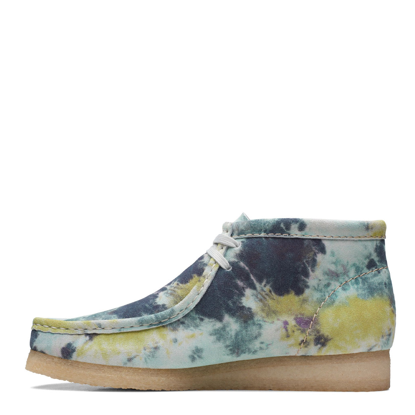 Der Clarks Originals Wallabee Boot ist ein kultiger Look für den Sommer. Das leuchtende Batik-Obermaterial verleiht unserem traditionellen Wallabee Boot einen Hauch von Print. Gefertigt aus geschmeidigem Leder für eine hochwertige Ästhetik, sitzt diese Silhouette auf einer klobigen Kreppsohle, um ihrer Design-DNA treu zu bleiben, während gewachste Schnürsenkel und farblich abgestimmte Anhänger diesen eiskalten Klassiker abrunden.