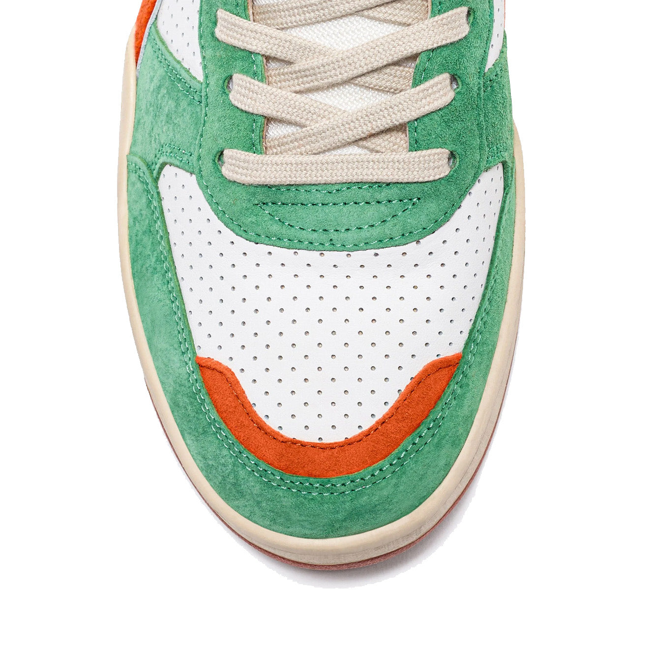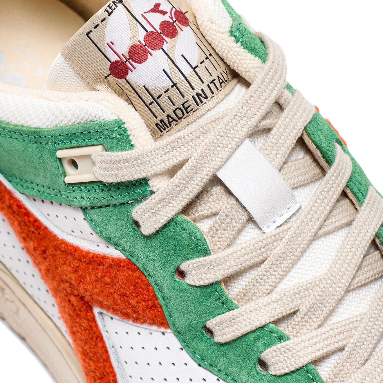 Strukturelemente prägen den B.560 Used RR Italia: Das Diadora-Logo ist vom berühmten französischen Sandplatz inspiriert und aus Teddywolle gefertigt, um dessen Intensität zu unterstreichen. Das Obermaterial besteht aus hochwertigem perforiertem Leder und ist mit Schweinsleder an Ferse, Öse und Zehenkappe versehen. Ein abschließendes Wachsfinish sorgt für einen unverwechselbaren Used-Effekt.