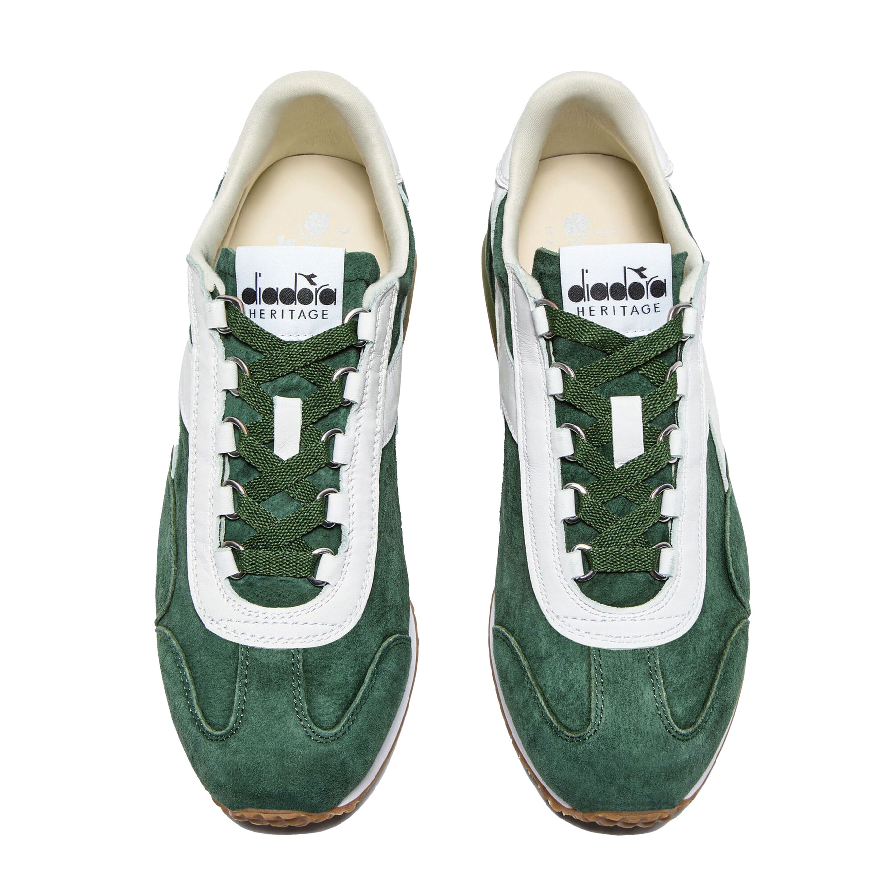 Der Diadora Equipe 75 SW Trainer in Green Botanic ist ein stylischer Sneaker, der die Originaldesigns der 70er Jahre würdigt. Diese aktualisierte Version aus weichem Schweinsleder besticht durch eine Stone-Wash-Behandlung, die dem Schuh einen unverwechselbaren, abgenutzten Charakter verleiht. Ursprünglich für Läufer und Leichtathleten entwickelt, hat sich der Equipe zu einem Symbol für Eleganz und Komfort entwickelt. Er ist für jeden Anlass geeignet und verbindet dabei nahtlos Retro-Charme mit modernem Appeal.