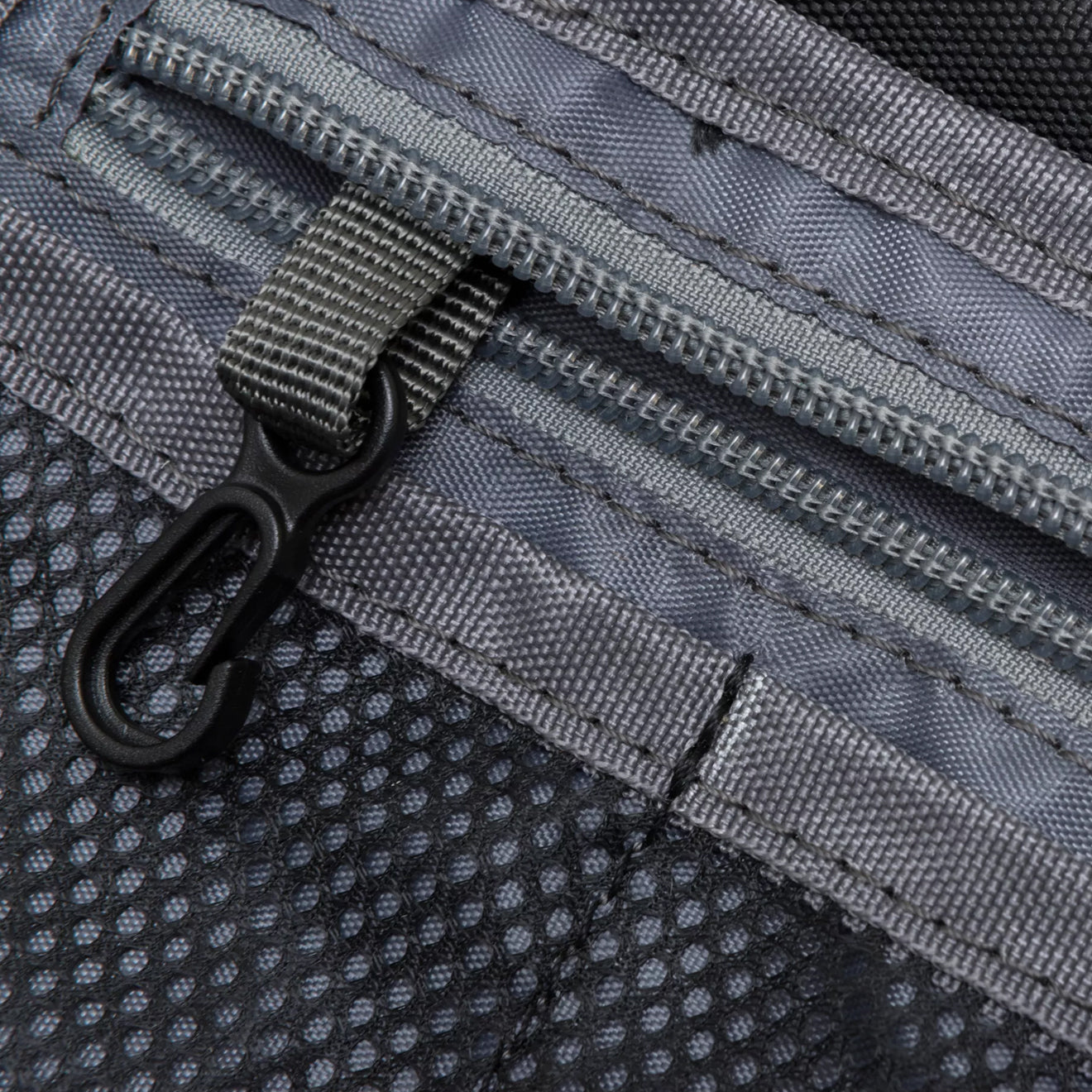 Die verstellbare Reißverschlussöffnung oben ermöglicht den Zugriff auf das Hauptfach, in dem sich eine Reißverschlusstasche, ein Schlüsselringclip und zwei Netztaschen befinden, sodass die Tasche ideal für den täglichen Bedarf ist.