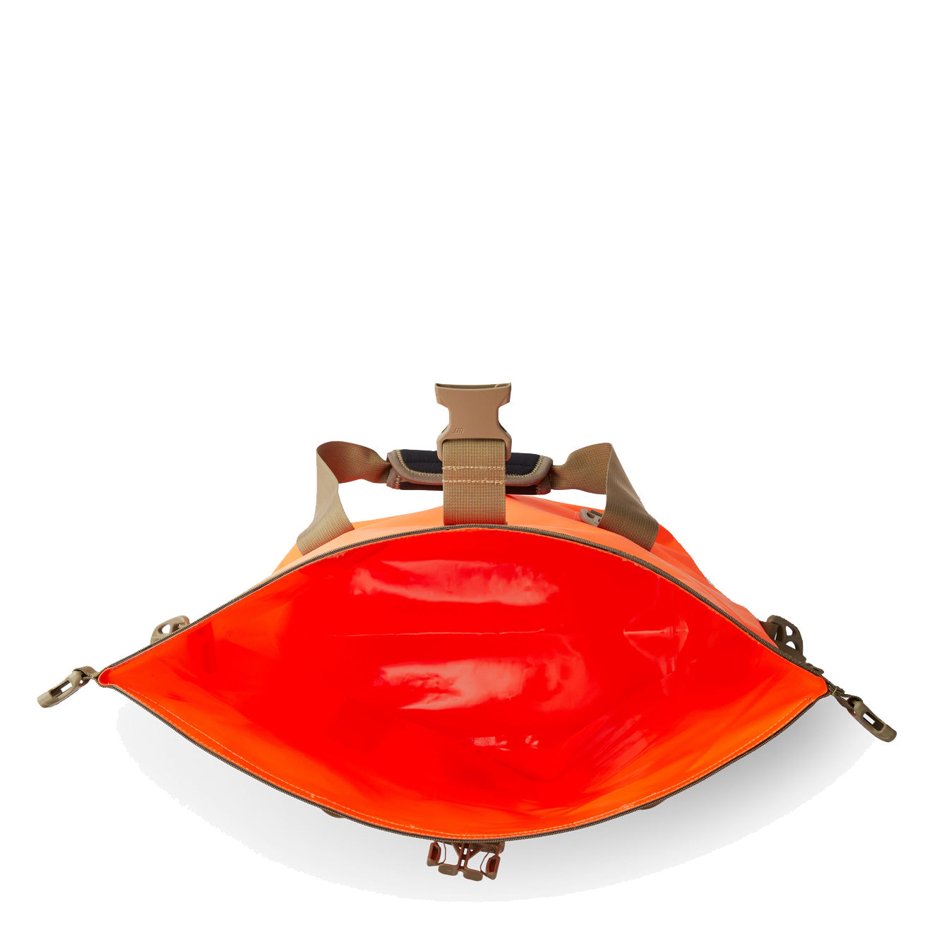 - Rollverschluss mit seitlichem Kordelzug und Gurtbändern in der Mitte