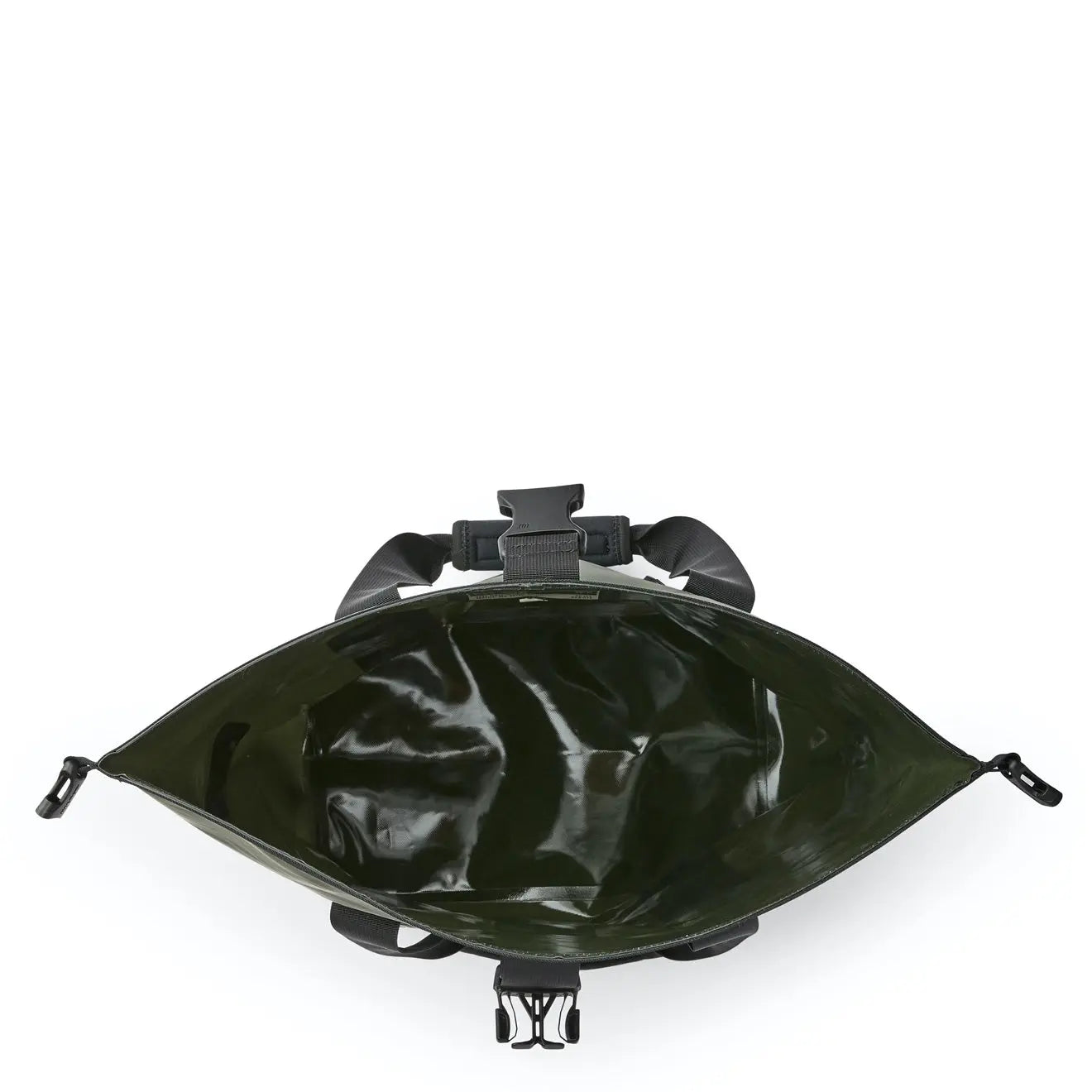 - Rollverschluss mit seitlichem Kordelzug und Gurtbändern in der Mitte