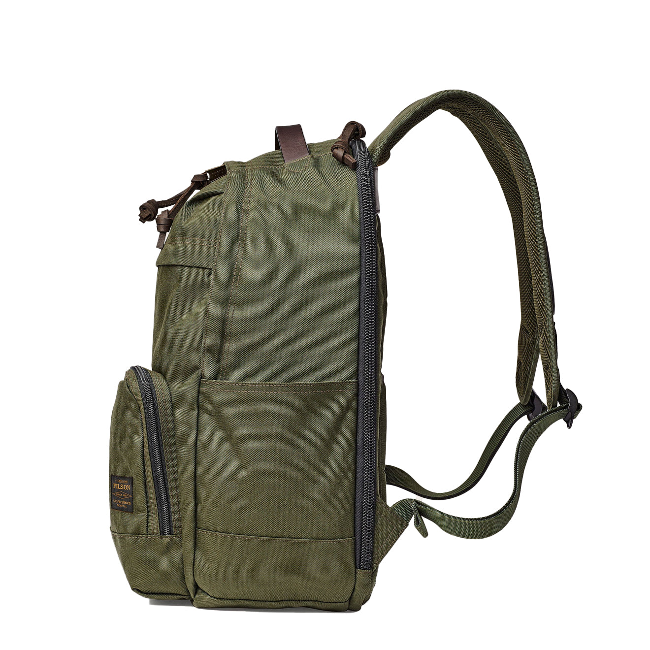 Normaler Preis €377,95Der Filson Dryden Rucksack in Ottergrün ist aus strapazierfähigem 1000-Denier Cordura®-Nylon gefertigt und bietet hervorragende Wetterbeständigkeit. Mit einem verstärkten doppellagigen Boden, einer Reißverschlussrückwand mit gepolstertem Laptopfach und robusten Spiralreißverschlüssen sorgt er für dauerhafte Stabilität und Schutz. Zaumleder und Nylongewebe bieten vielseitige Tragemöglichkeiten und machen diesen Rucksack perfekt für Reisen und den Alltag.