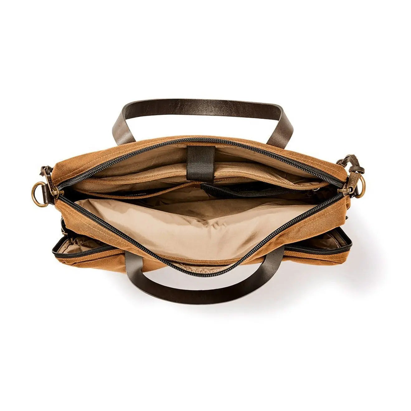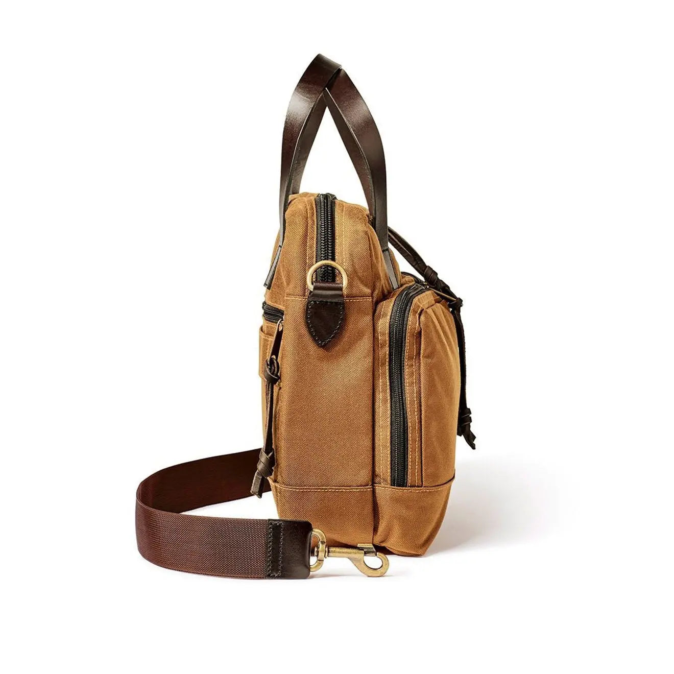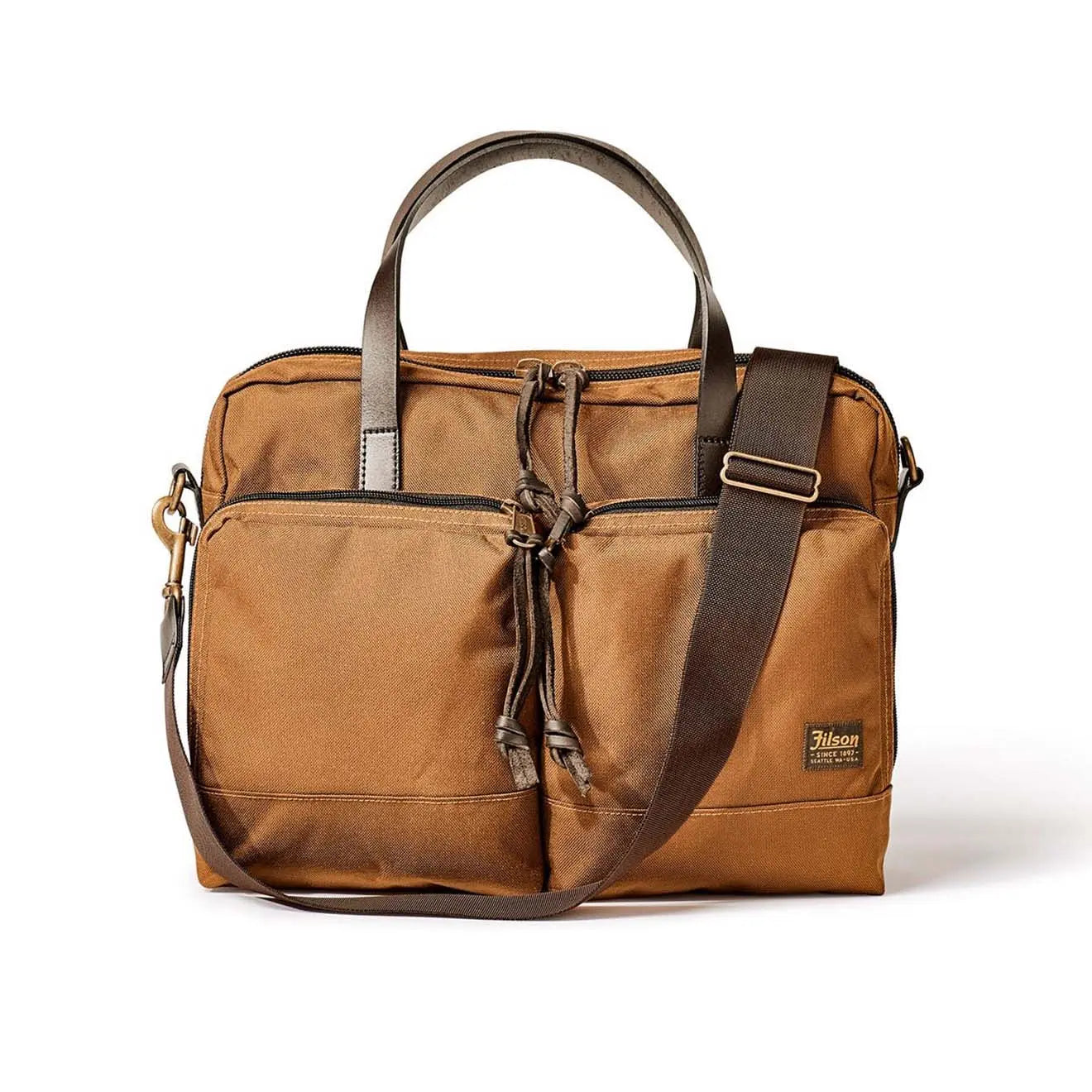 Normaler Preis €346,95Die Filson Dryden Aktentasche in Whiskey ist der perfekte Reisebegleiter. Hergestellt aus wasserabweisendem, abriebfestem Ballistic Nylon, ist diese Tasche langlebig. Sie verfügt über eine robuste Doppelschicht am Boden, ist für intensive Nutzung geeignet und hat ein Fassungsvermögen von 14 Litern. Sie bietet ein gepolstertes Fach für einen bis zu 15 Zoll großen Laptop, zwei große Außentaschen und einen Trolley-Gurt, der bequem über die Koffergriffe gleitet.