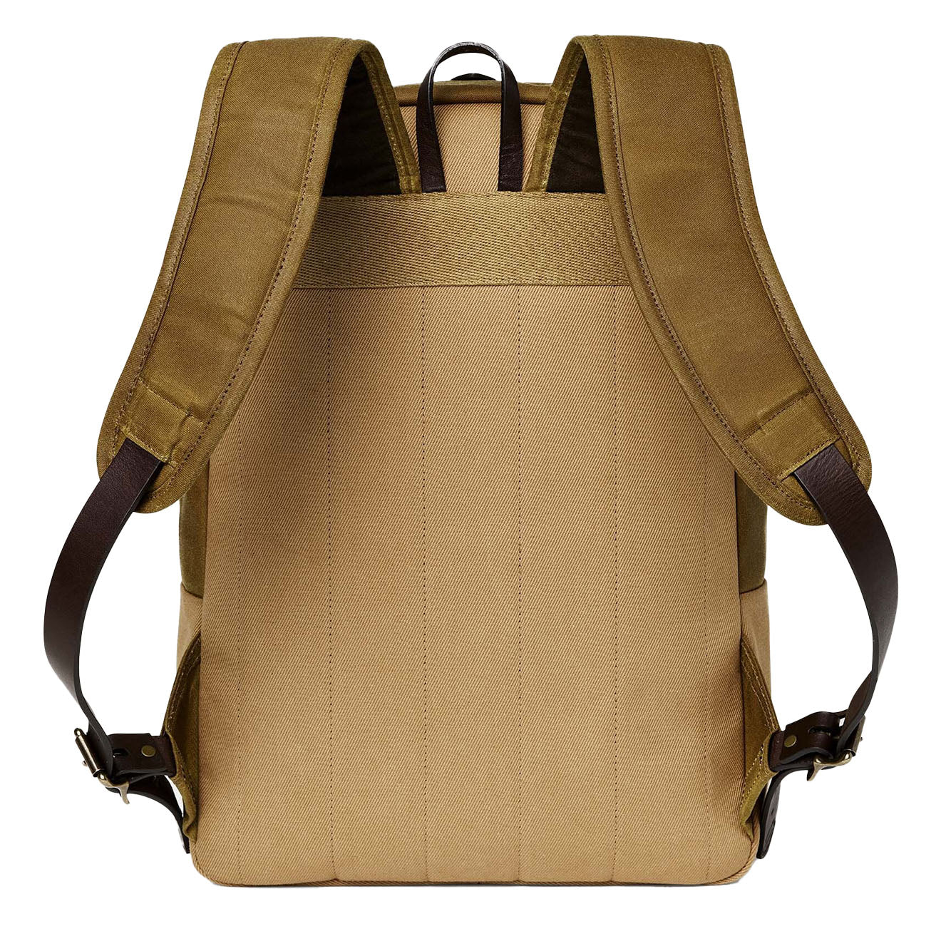 Normaler Preis €446,95Der Filson Journeyman Rucksack in Hellbraun vereint großzügiges Fassungsvermögen und Komfort für Wanderungen und den Beruf. Er besteht aus wasserabweisendem Tin Cloth mit einer robusten, robusten Twill-Rückseite und verfügt über gepolsterte, mit Moleskin gefütterte Schultergurte, die mit pflanzlich gegerbtem Bridle Leather von Wickett & Craig gesichert sind. Das Hauptfach, gesichert durch einen YKK®-Reißverschluss aus Messing, geschützt durch eine Tin Cloth-Rinne, enthält ein gepolstertes Fach für einen 15-Zoll-Laptop. Eine erweiterbare Außentasche mit Seitenfalten bietet zusätzlichen Stauraum, und Details aus Bridle Leather sorgen für Strapazierfähigkeit und Stil. Dieser durchdachte Rucksack bietet zuverlässigen Service, ohne aufzufallen.