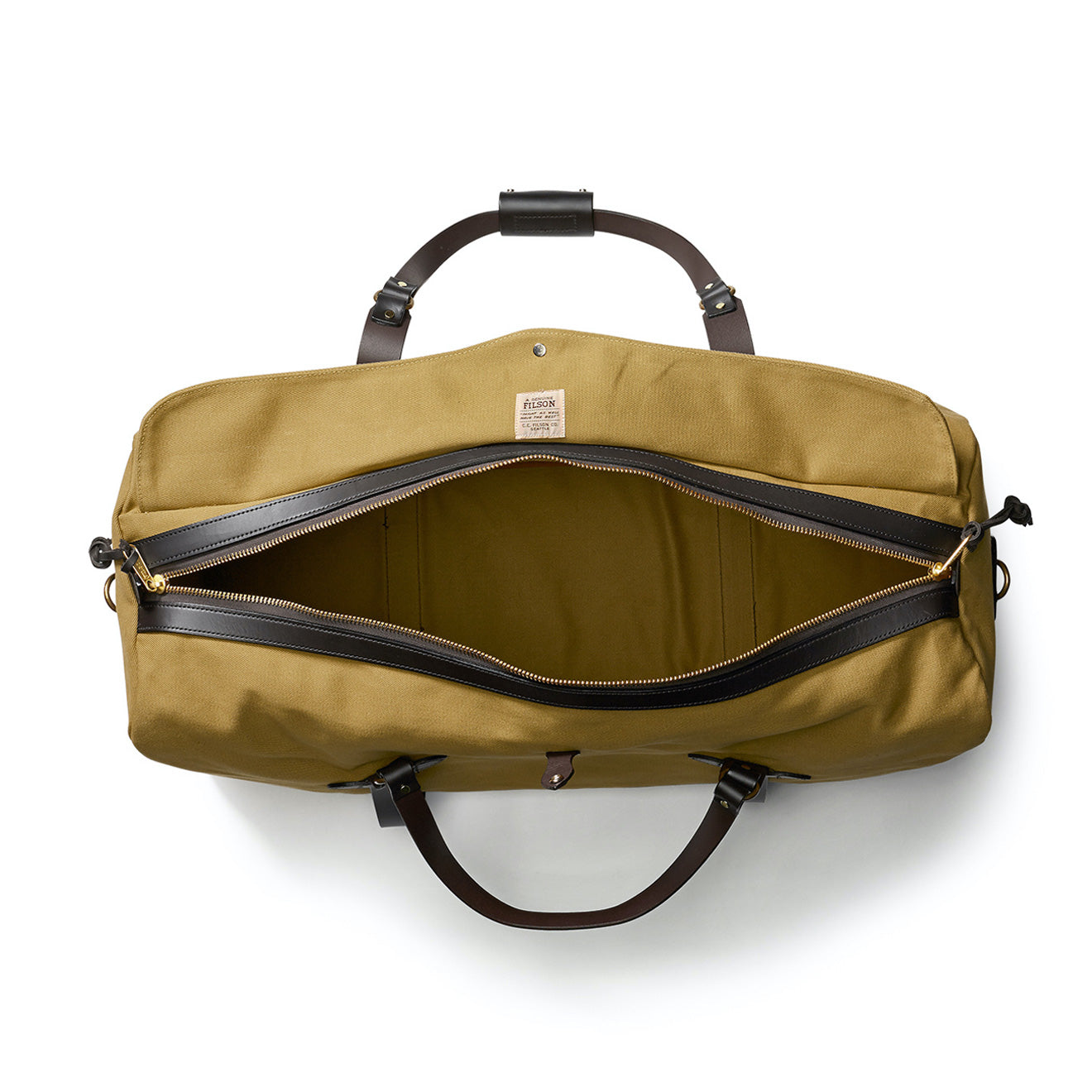 Normaler Preis €749,95Die Filson Large Duffle Bag in Tan ist aus wasserabweisendem, abriebfestem Twill gefertigt und bietet jahrelangen, zuverlässigen Einsatz. Hochwertige Tragegurte aus italienischem Rindsleder umschließen die Tasche komplett und ermöglichen den Transport schwerer Ausrüstung. Der verstellbare, abnehmbare Leder-Schultergurt ermöglicht das Tragen über der Schulter oder als Messenger-Tasche.