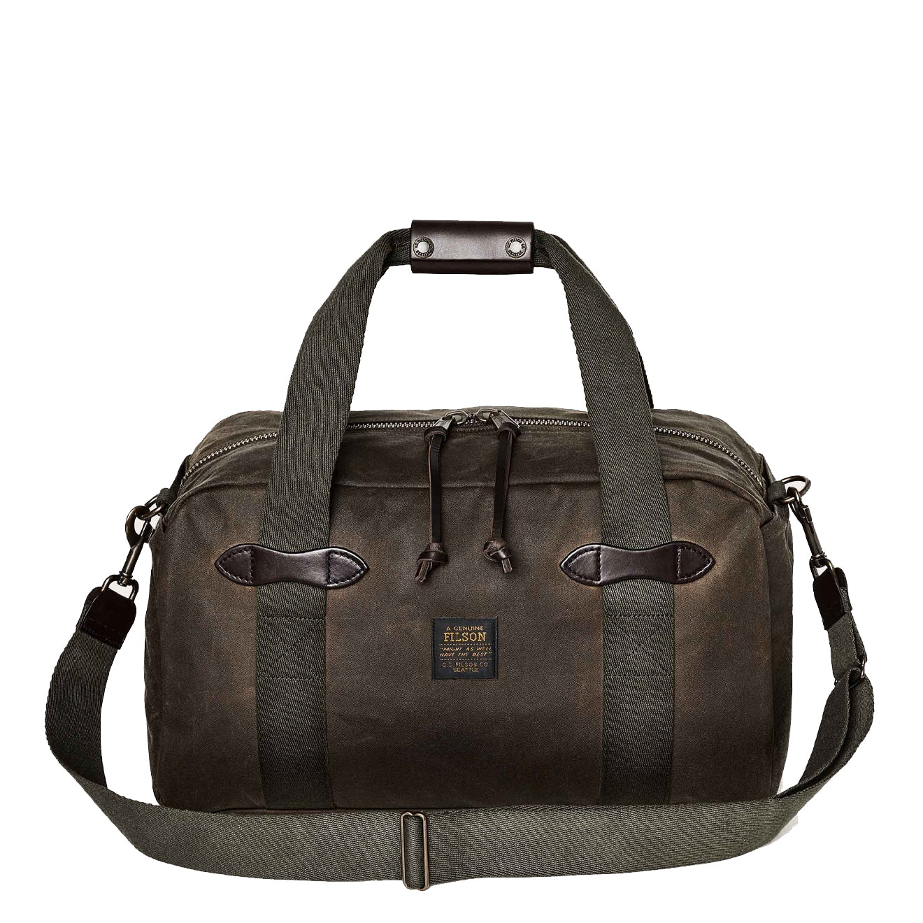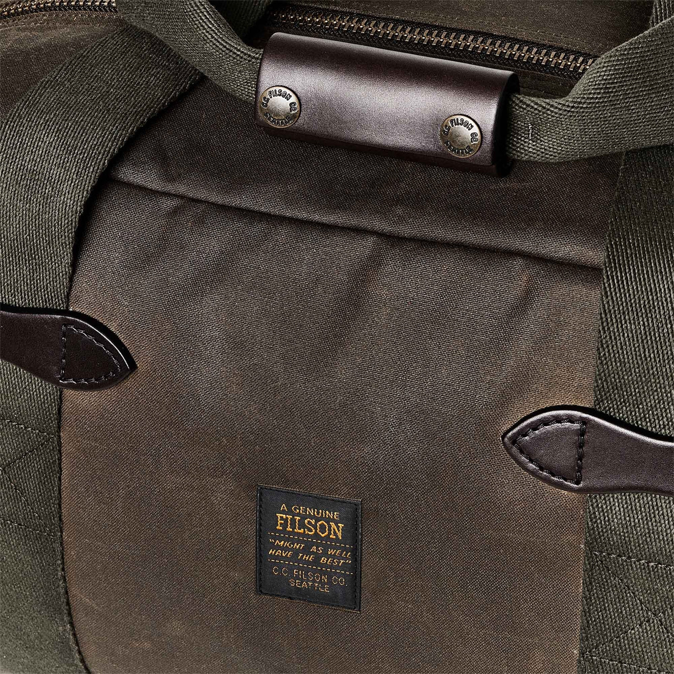 Die Filson Small Tin Cloth Duffle Bag ist ideal für leichtes und schnelles Reisen. Sie besteht aus Filsons ikonischem gewachstem Canvas und ist dadurch wetterbeständig, strapazierfähig und langlebig. An den Seiten der Tasche sind dicke Tragegriffe aus Baumwollgewebe für maximale Stabilität angenäht. Der Tragegriff besteht aus satteltauglichem Zaumleder, das sich der Form Ihrer Hand anpasst und Ihnen jahrzehntelangen Tragekomfort bietet. Die Innenseite ist mit Nylon ausgekleidet und bietet zusätzlichen Schutz für Ihre Ausrüstung.