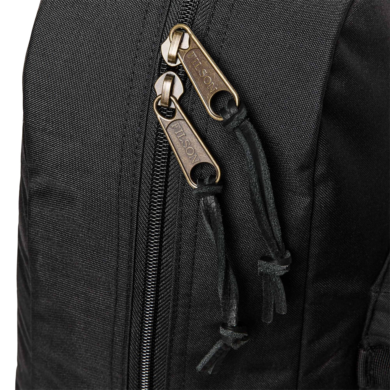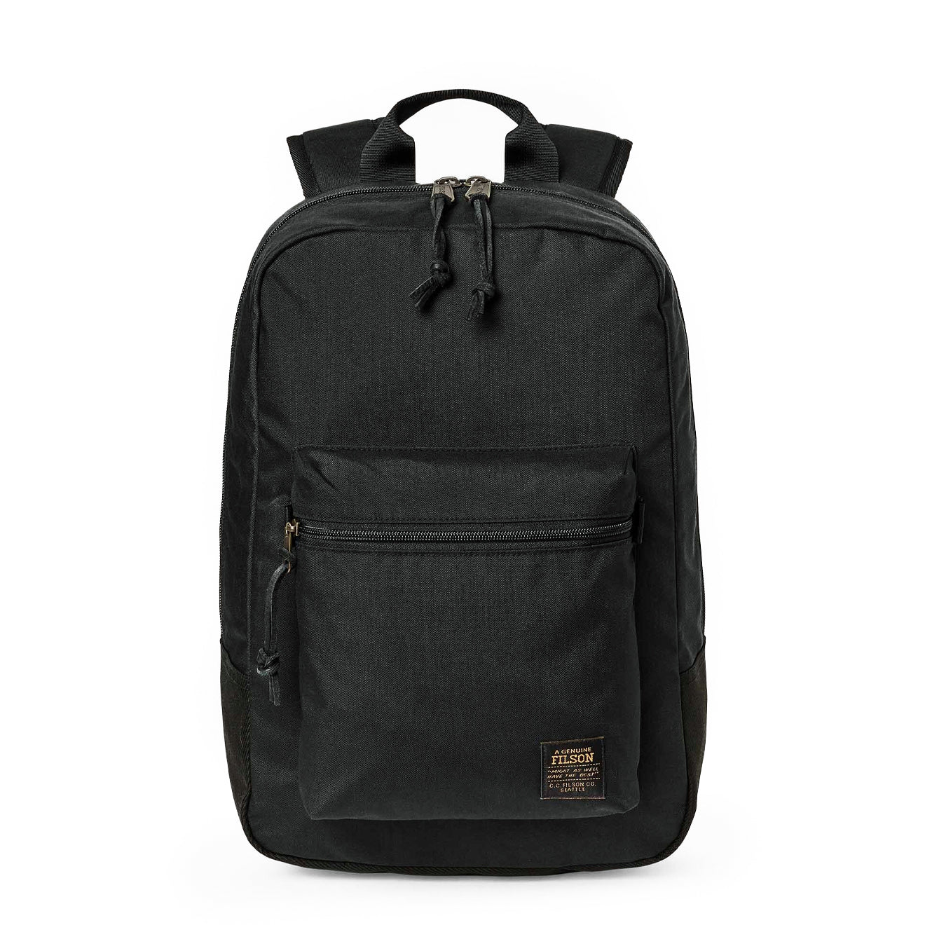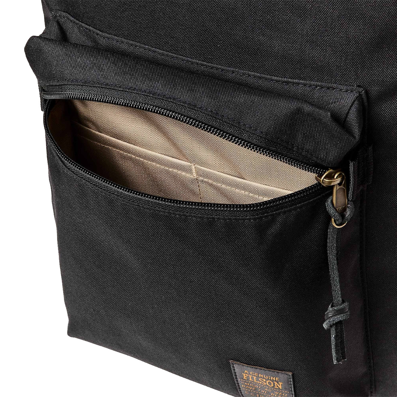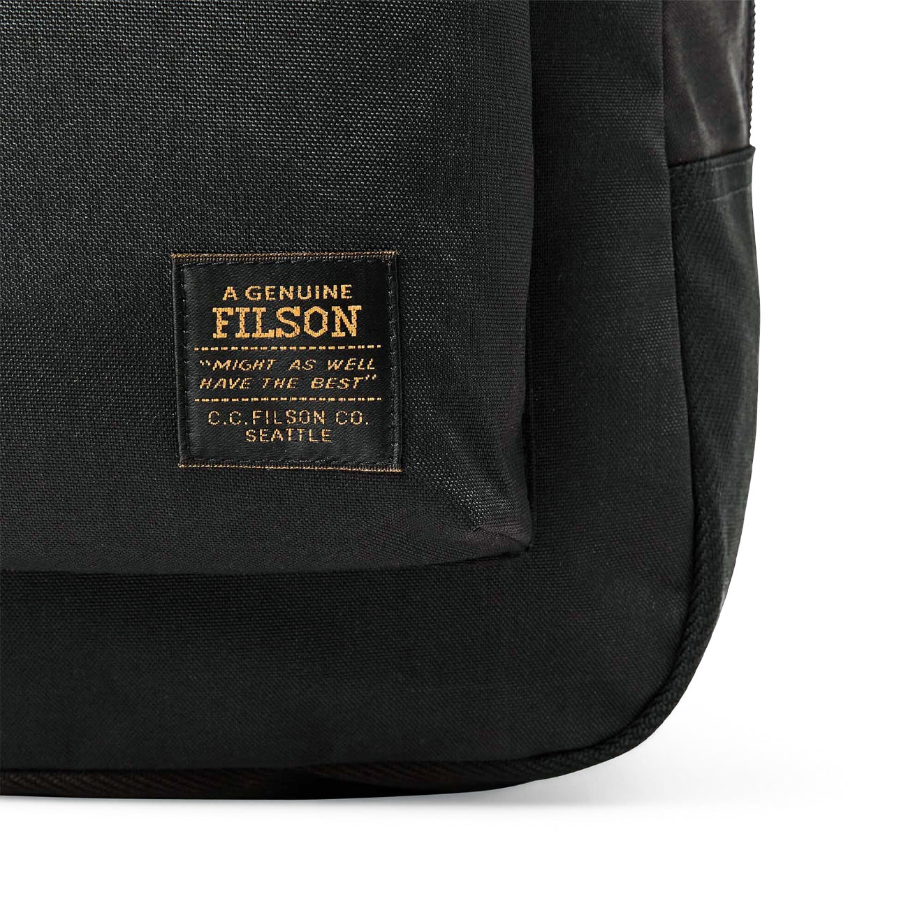 Normaler Preis €216,95 €172,95 Sparen 20% SonderpreisThe Filson Surveyor 25L Backpack in Black blends rugged durability with lightweight design. Made from 500D and 1000D waxed Cordura nylon, it resists abrasion and repels water while carrying up to 25 litres of gear. Padded shoulder straps, a contoured back panel, and an adjustable sternum strap ensure comfort and stability, while dedicated laptop and stow pockets keep essentials organised.