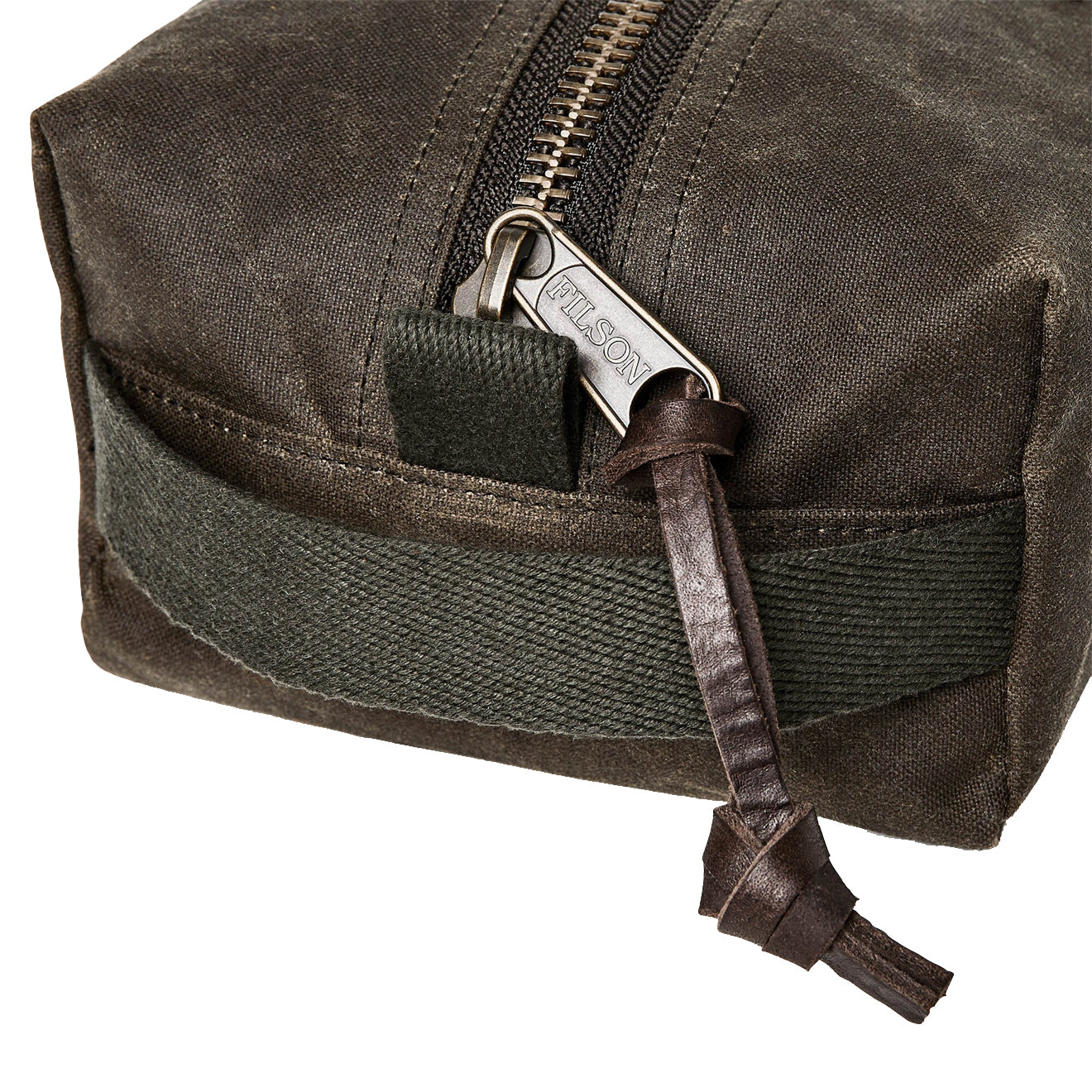 Normaler Preis €134,95Das Filson Tin Cloth Travel Kit Otter Green. Filson Tin Cloth-Taschen sind für leichtes und schnelles Reisen konzipiert und bieten die Wetterbeständigkeit und Strapazierfähigkeit, die ihre Taschen legendär gemacht haben. Das Filson Tin Cloth Travel Kit ist ein leichter Kulturbeutel, der alles Wichtige für ein Leben voller Reisen transportiert. Es besteht aus dem ikonischen gewachsten Canvas, das Förster, Sportler und Handwerker seit über einem Jahrhundert vor rauem Wetter, Gestrüpp und Abrieb schützt. Es ist vollständig mit Nylon gefüttert, um den Inhalt zu schützen, und wird mit einem robusten YKK®-Reißverschluss aus Metall gesichert. Der Tragegriff aus Baumwollgewebe dient gleichzeitig als Schlaufe zum Aufhängen. Reißverschlussanhänger aus Zaumleder.