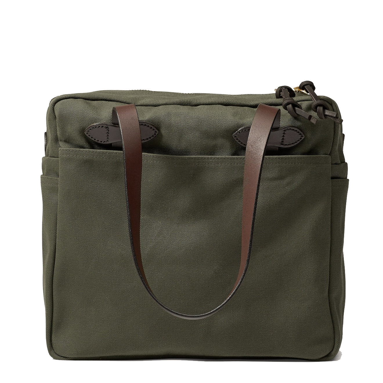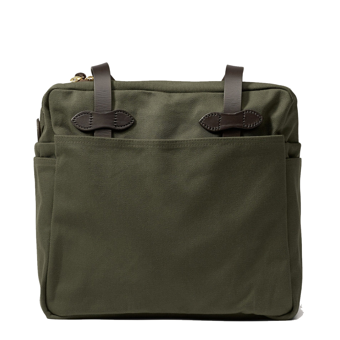 Normaler Preis €304,95Die Filson Rugged Twill Tote Bag in Ottergrün ist aus wasserabweisendem, abriebfestem Rugged Twill gefertigt und bietet so Langlebigkeit und Wetterbeständigkeit. Der geräumige Innenraum bietet Platz für sperrige Gegenstände, und vier Außentaschen bieten Platz für Kleinigkeiten. Abgerundet wird das Ganze durch hochwertige Griffe aus italienischem Rindsleder.
