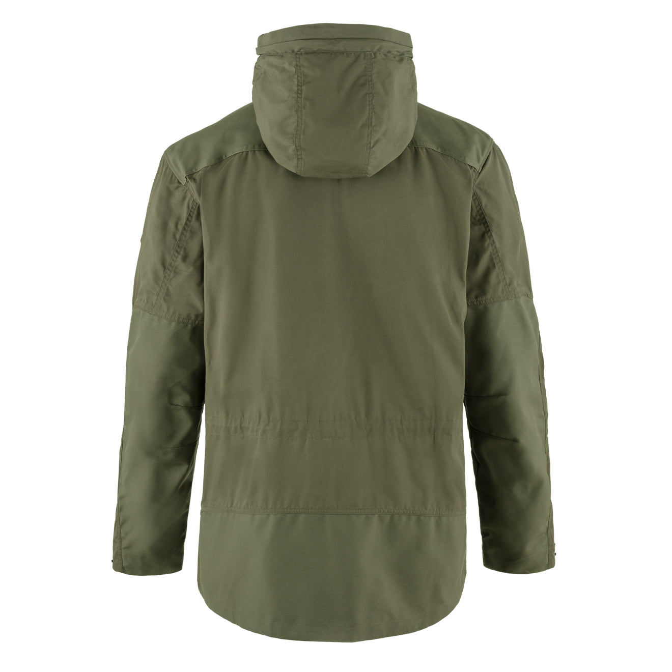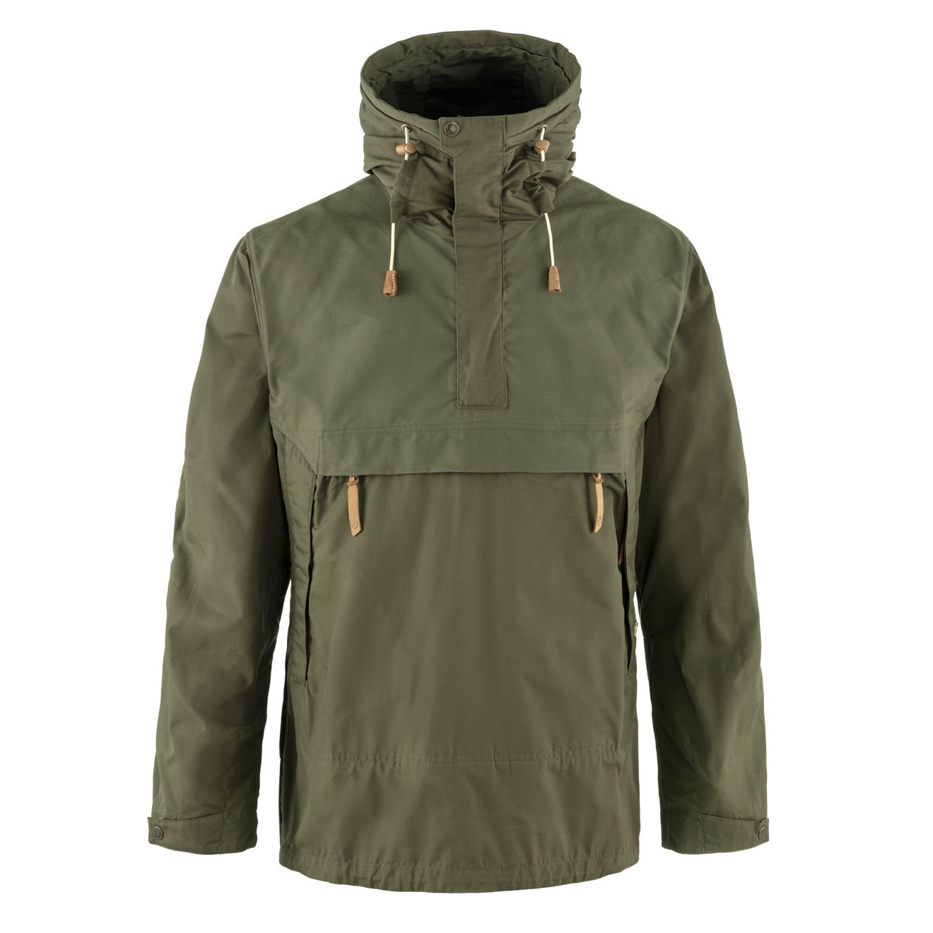 Normaler Preis €544,95Der Anorak Nr. 8 wurde entwickelt, um den harten Bedingungen in Wald und Bergen das ganze Jahr über standzuhalten. Die Kapuze lässt sich perfekt an den Kopf anpassen und dank der Visierkonstruktion lässt sich der Schirm in zwei Winkeln zurückklappen, je nachdem, ob Sie maximalen Windschutz oder bessere Rundumsicht wünschen. Wird die Kapuze nicht getragen, bildet sie einen hohen Kragen, der Ihren Hals warm hält. Bei wärmerem Wetter kann der Reißverschluss geöffnet und die Öffnung aufgeknöpft und zur Seite geklappt werden, um überschüssige Wärme abzuführen. An den Seiten des Anoraks befinden sich lange Reißverschlüsse, die zur Belüftung geöffnet werden können und das An- und Ausziehen erleichtern. Die große Kängurutasche vorne ist sowohl von oben als auch von den Seiten zugänglich. Ein Kordelzug hinten reguliert die Taille, ein weiterer Kordelzug vorne den Saum. Geknöpfte Ärmelbündchen. Der Anorak besteht aus wind- und wasserabweisendem G-1000 aus recyceltem Polyester und Bio-Baumwolle mit extra starkem G-1000 HeavyDuty an Schultern, Ärmeln und verlängertem Rücken.