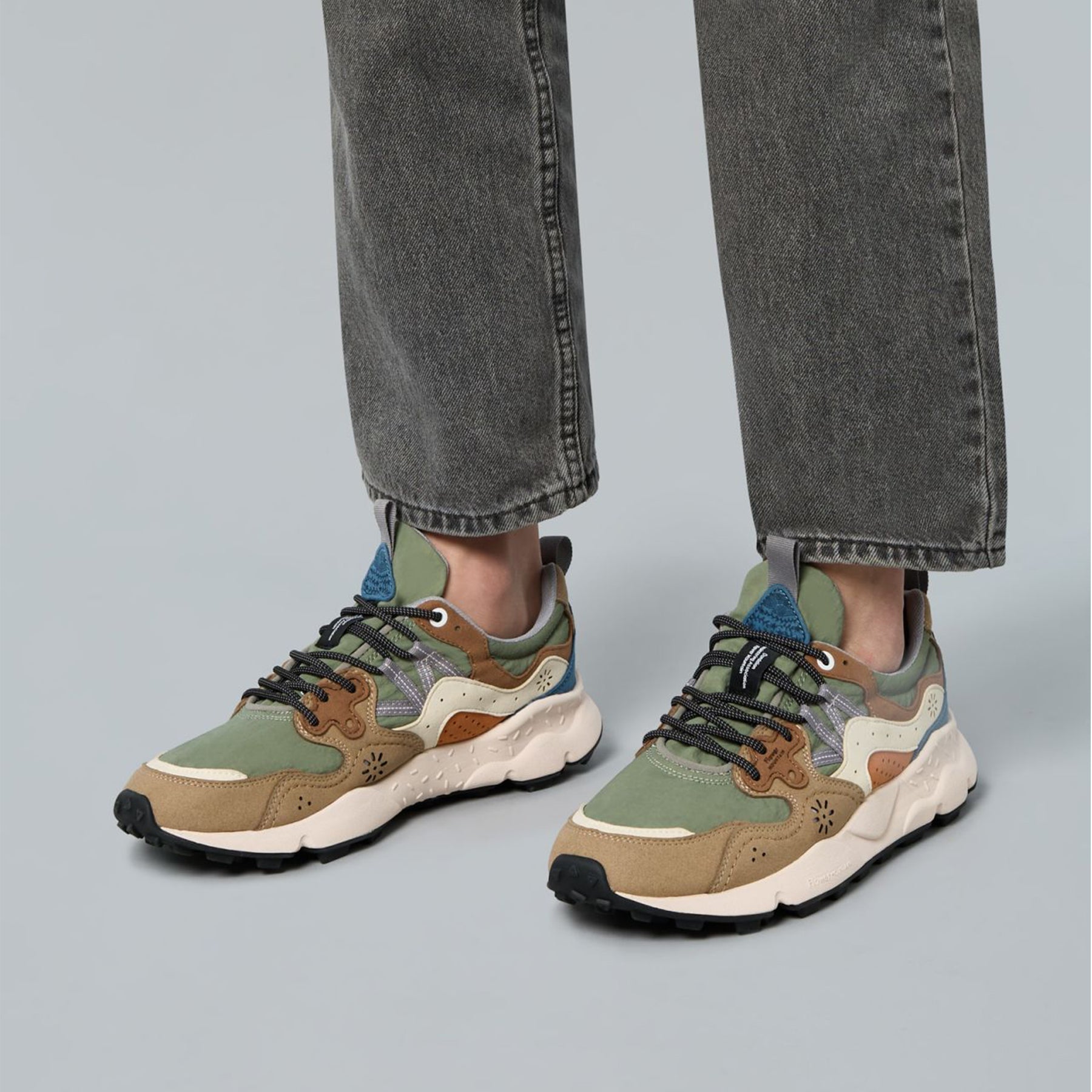 Der Flower Mountain Yamano 3 Kaiso Sneaker in Braun/Dunkelbraun besticht durch ein Obermaterial aus umweltfreundlichem Recyclingmaterial mit perforierten Details. Der Trekking-Schnürverschluss wird durch geformte, verstärkte Ösen für einen sicheren Sitz unterstützt. Innen sorgen ein recycelbares Textilfutter und eine Kork-Innensohle für Komfort und Nachhaltigkeit. Die geformte, ultraleichte Gummisohle mit geriffeltem Profil sorgt für hervorragende Traktion und macht diesen Sneaker zu einer perfekten Mischung aus Stil, Komfort und umweltbewusstem Design.