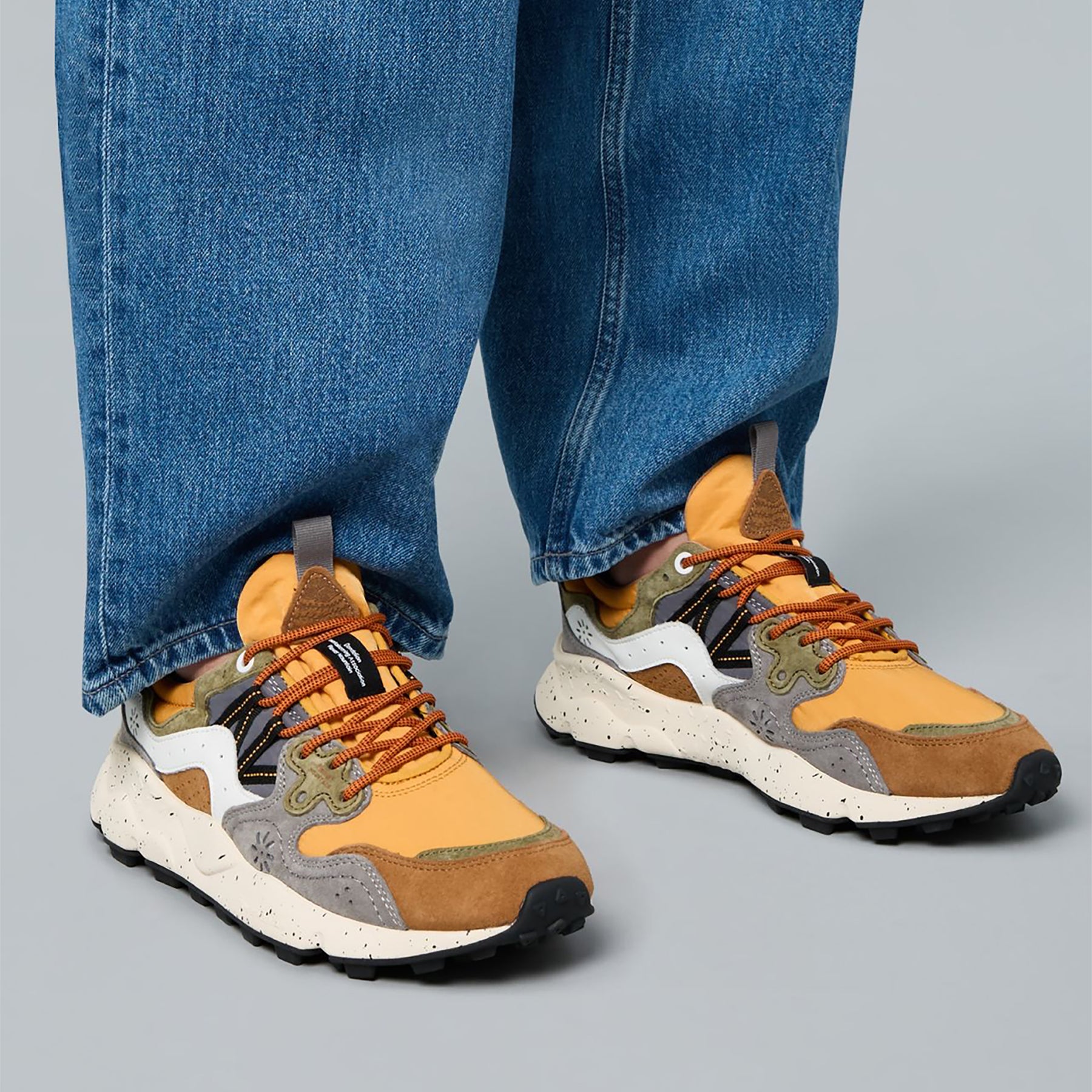 Normaler Preis €222,95Der Flower Mountain Yamano 3 Sneaker in Warm Brown/Mustard vereint Performance mit urbanem Style. Das Obermaterial aus technischem Gewebe mit Wildledereinsätzen und ikonischen Perforationen verleiht diesen Sneakern einen eleganten, sportlichen Look. Der Schnürverschluss mit verstärkten Ösen und Trekking-Schnürsenkeln ist von High-Performance-Modellen inspiriert. Die anatomische, antibakterielle Kork-Innensohle sorgt für Komfort und ganztägiges Tragen, während die ultraleichte Gummisohle mit seitlichen Formen und gezahntem Profil für Langlebigkeit und hervorragenden Grip sorgt. Perfekt für Outdoor-Aktivitäten und den urbanen Alltag.