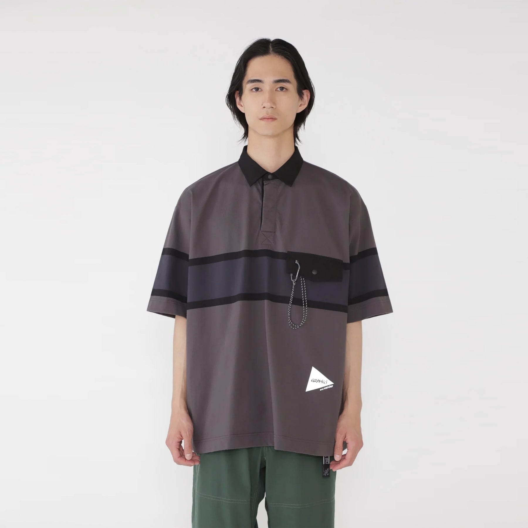 Das Gramicci x And Wander Tech Rugby-Shirt in Anthrazit bietet eine entspannte Passform aus strapazierfähigem, technischem Gewebe für Komfort und Bewegungsfreiheit. Die leuchtende Farbe verleiht Ihrer Garderobe einen frischen, lässigen Touch und macht es ideal für aktive Tage und entspannte Anlässe.