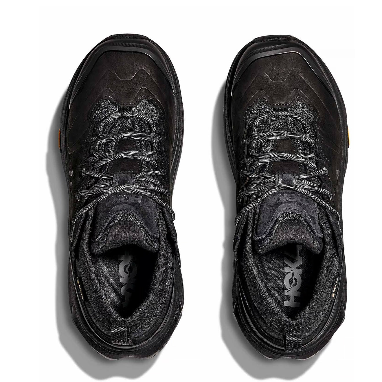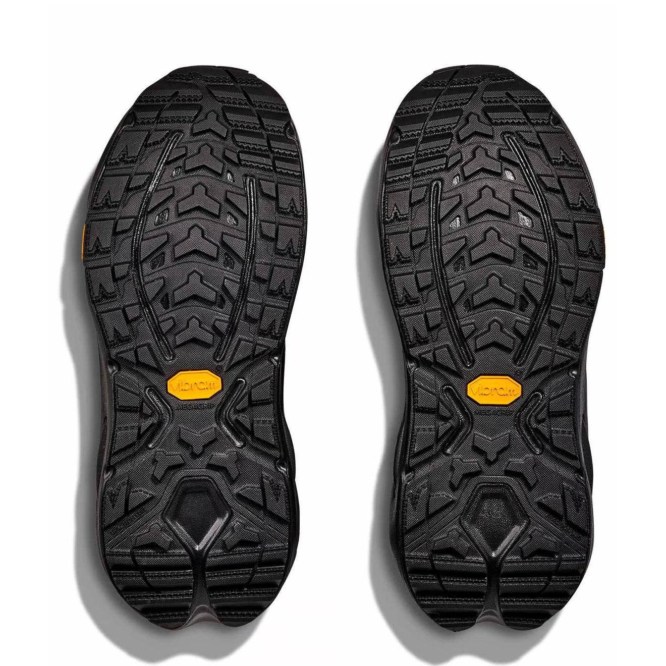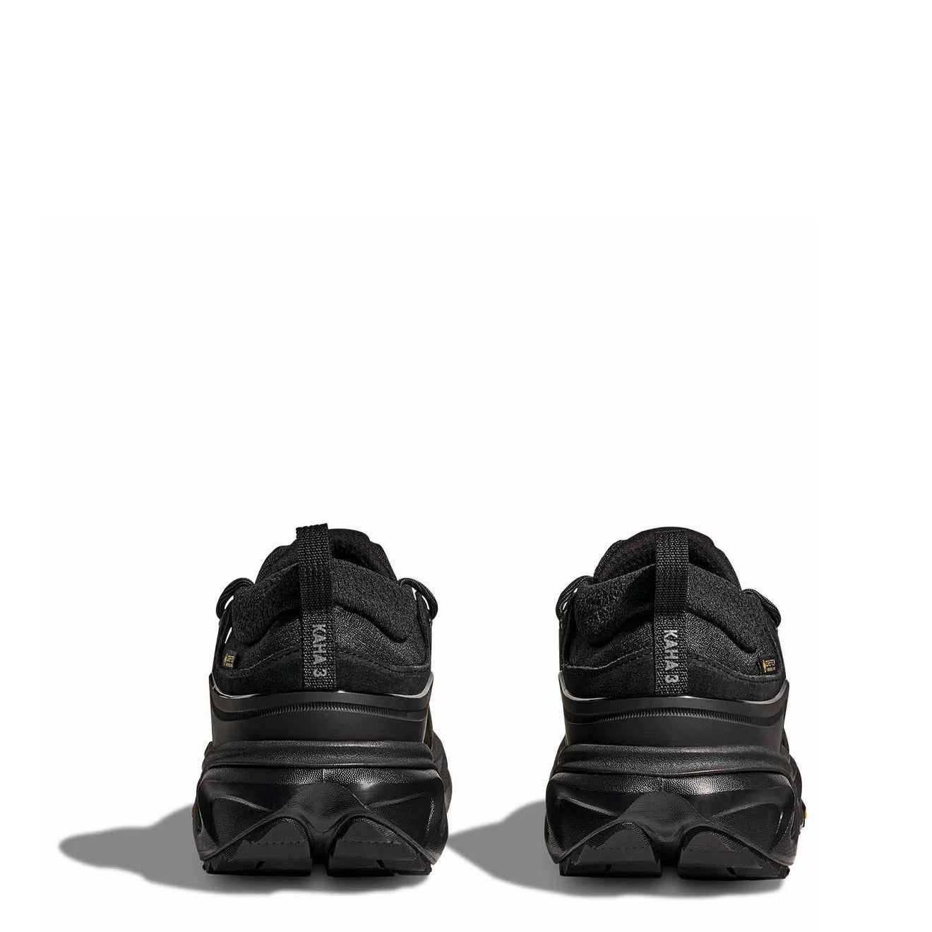 Der Hoka Kaha 3 Low GTX Trainer in Schwarz / Schwarz wurde für unübertroffenen Komfort und Langlebigkeit neu gestaltet und ist ideal für Wanderabenteuer und mehrtägige Trekkingtouren. Gefertigt aus wasserdichtem Nubukleder und mit GORE-TEX-Technologie bietet er hervorragenden Wetterschutz, während eine gepolsterte Einlegesohle und eine federnde EVA-Zwischensohle aus Zuckerrohr für dauerhaften Komfort und Halt sorgen. Eine robuste Zehenkappe erhöht die Haltbarkeit, und die Vibram® Megagrip-Außensohle sorgt für zuverlässigen Halt auf jedem Terrain und macht ihn zum ultimativen Begleiter für Outdoor-Abenteuer.