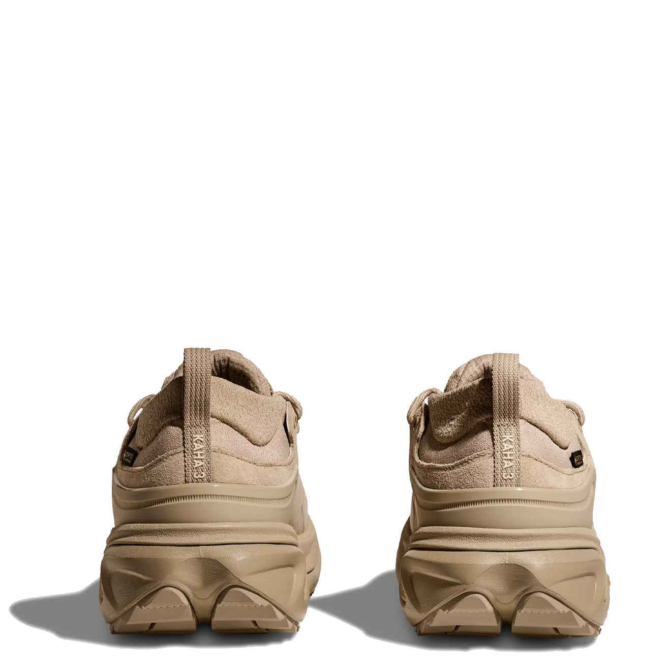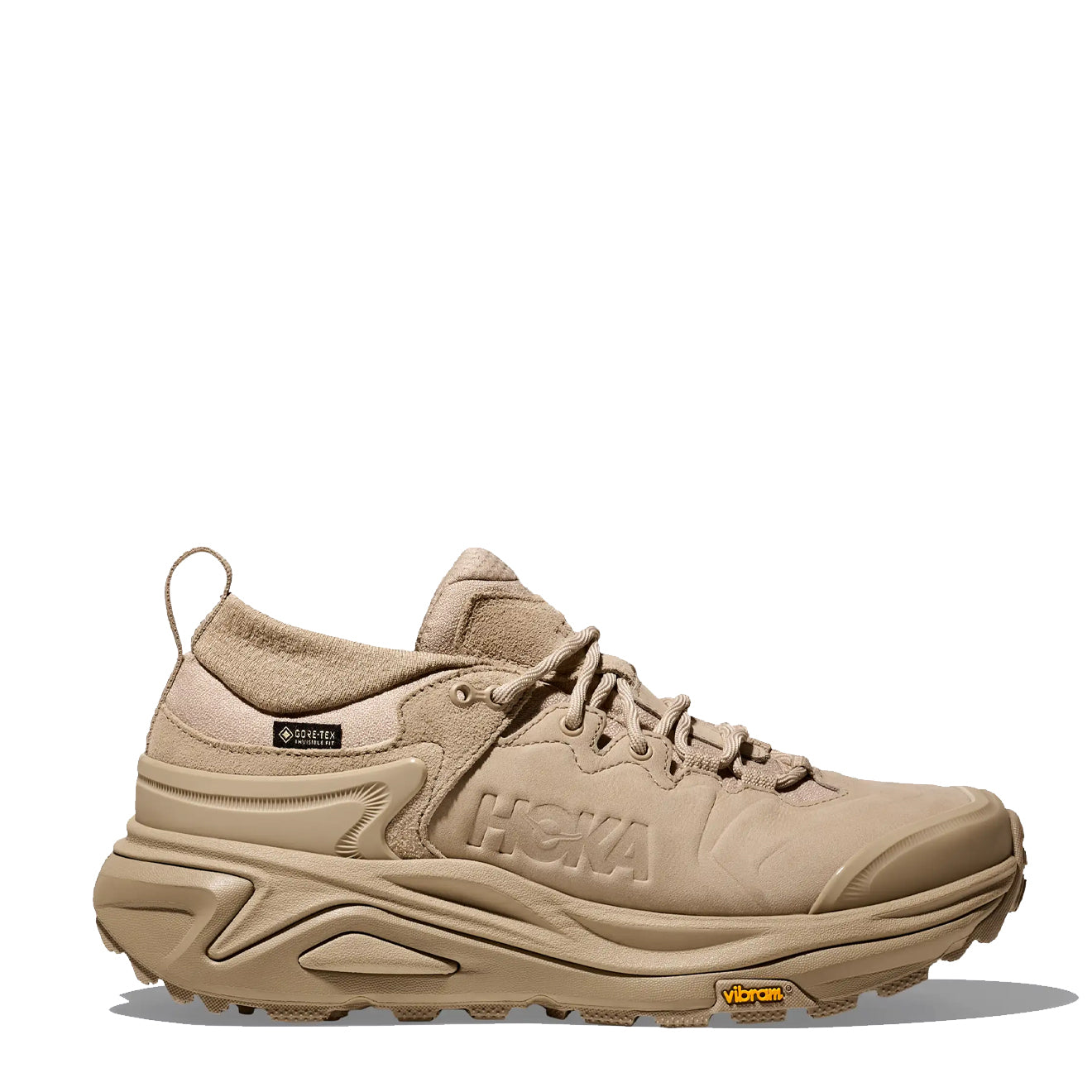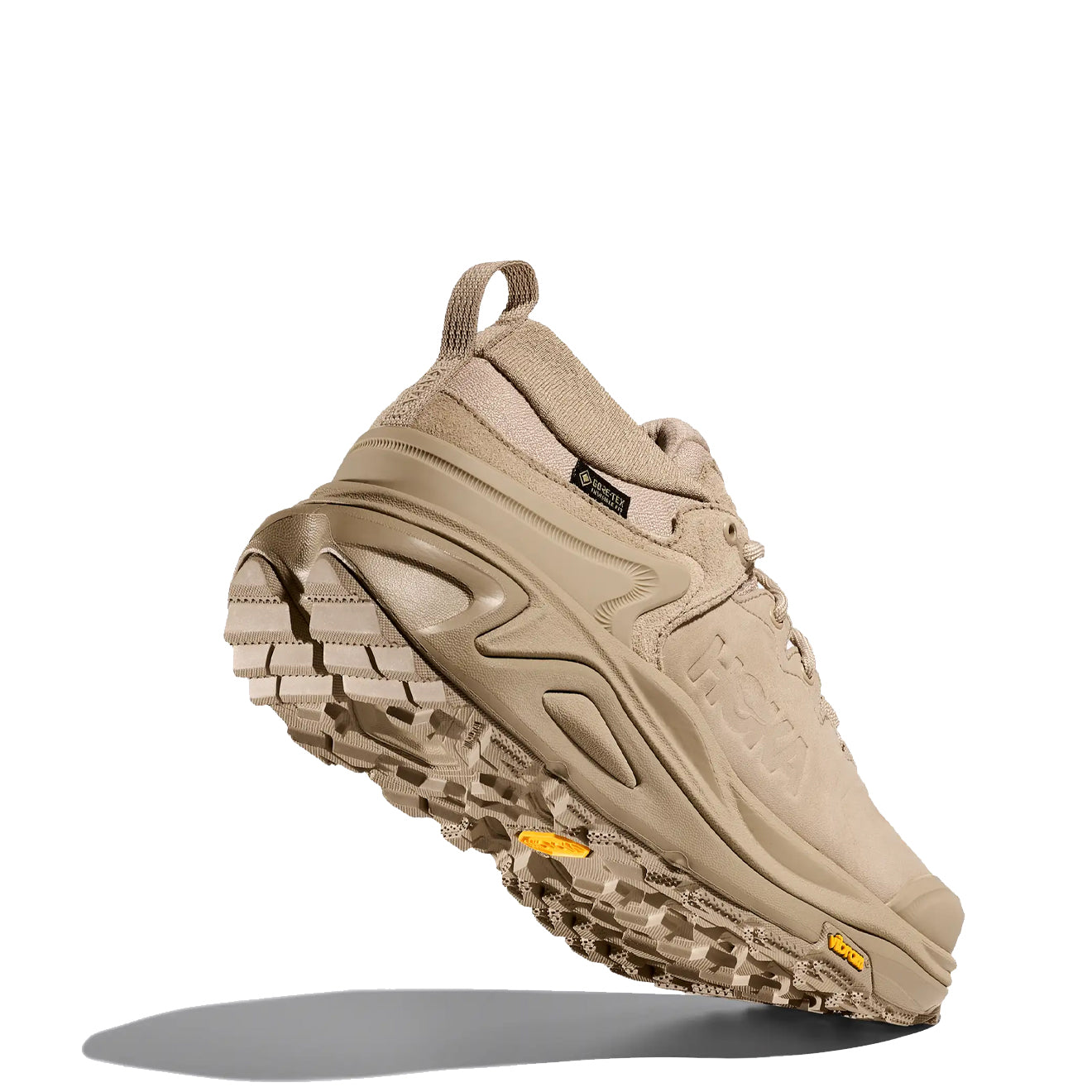 Der Hoka Kaha 3 Low GTX Trainer in Raw Linen / Oat Milk wurde für unübertroffenen Komfort und Langlebigkeit neu gestaltet und ist ideal für Wanderabenteuer und mehrtägige Trekkingtouren. Gefertigt aus wasserdichtem Nubukleder und mit GORE-TEX-Technologie bietet er hervorragenden Wetterschutz, während eine gepolsterte Einlegesohle und eine federnde EVA-Zwischensohle aus Zuckerrohr für dauerhaften Komfort und Halt sorgen. Eine robuste Zehenkappe erhöht die Haltbarkeit, und die Vibram® Megagrip-Außensohle sorgt für zuverlässigen Halt auf jedem Terrain und macht ihn zum ultimativen Begleiter für Outdoor-Abenteuer.