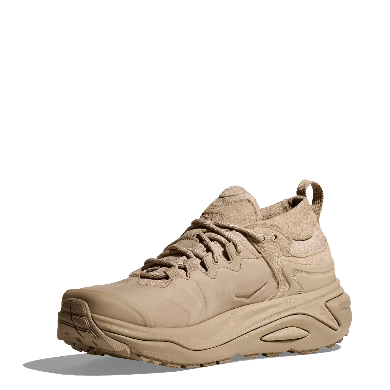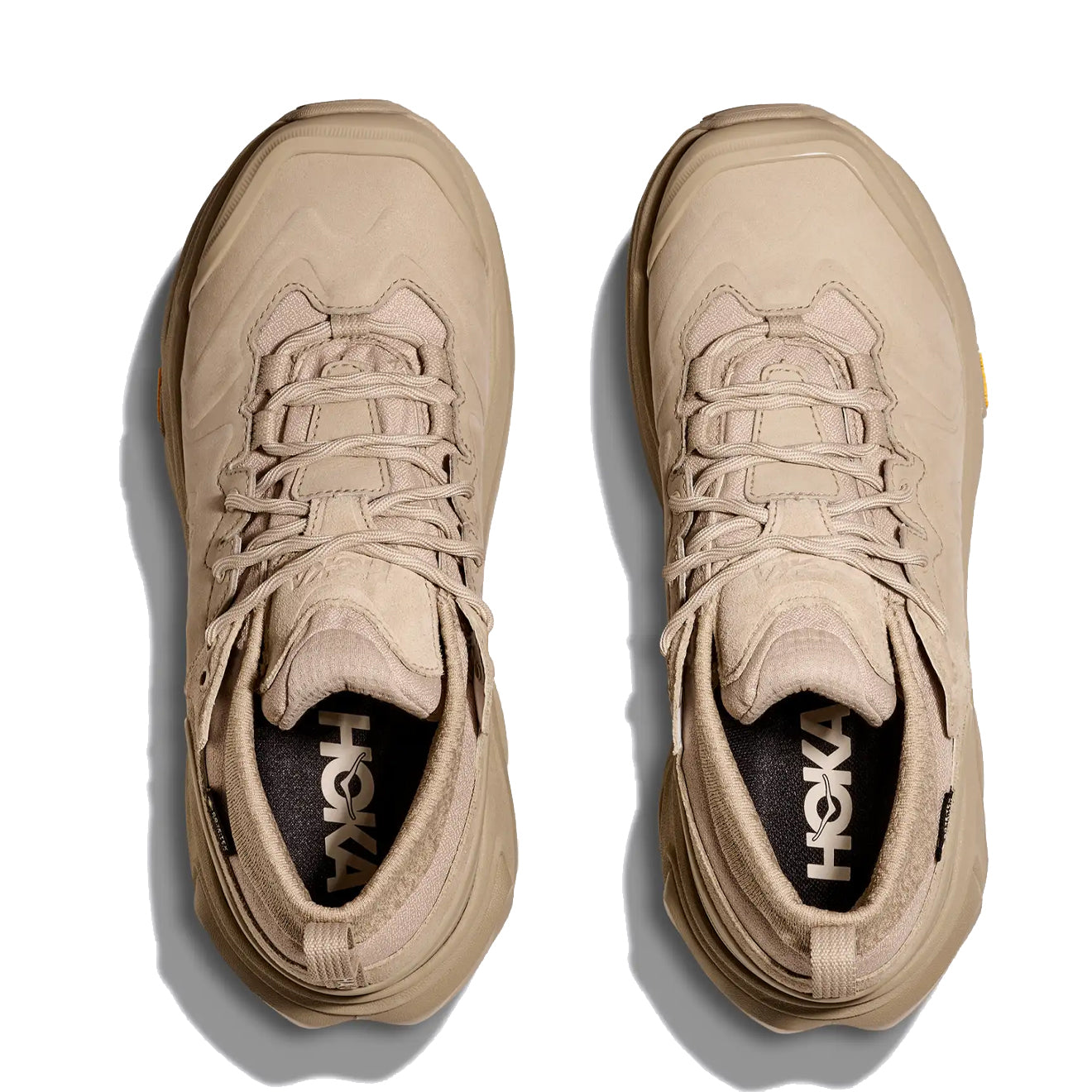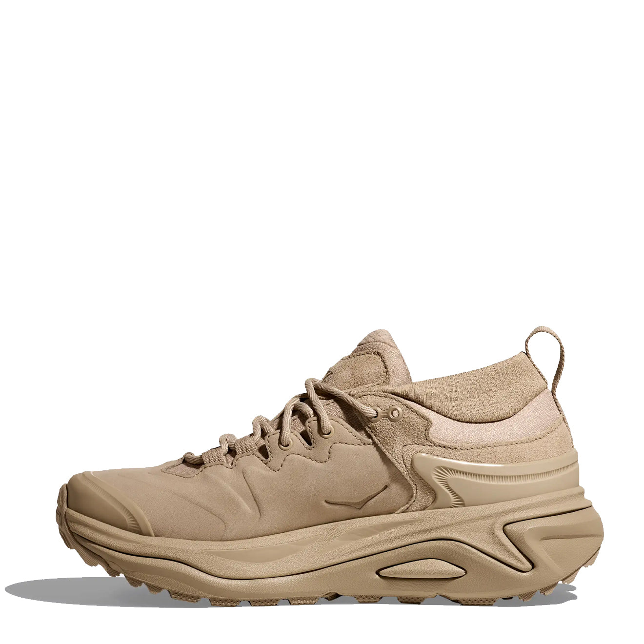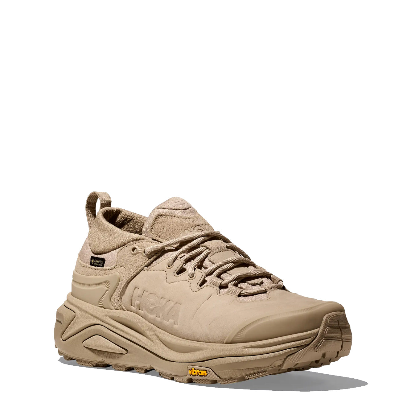 Der Hoka Kaha 3 Low GTX Trainer in Raw Linen / Oat Milk wurde für unübertroffenen Komfort und Langlebigkeit neu gestaltet und ist ideal für Wanderabenteuer und mehrtägige Trekkingtouren. Gefertigt aus wasserdichtem Nubukleder und mit GORE-TEX-Technologie bietet er hervorragenden Wetterschutz, während eine gepolsterte Einlegesohle und eine federnde EVA-Zwischensohle aus Zuckerrohr für dauerhaften Komfort und Halt sorgen. Eine robuste Zehenkappe erhöht die Haltbarkeit, und die Vibram® Megagrip-Außensohle sorgt für zuverlässigen Halt auf jedem Terrain und macht ihn zum ultimativen Begleiter für Outdoor-Abenteuer.