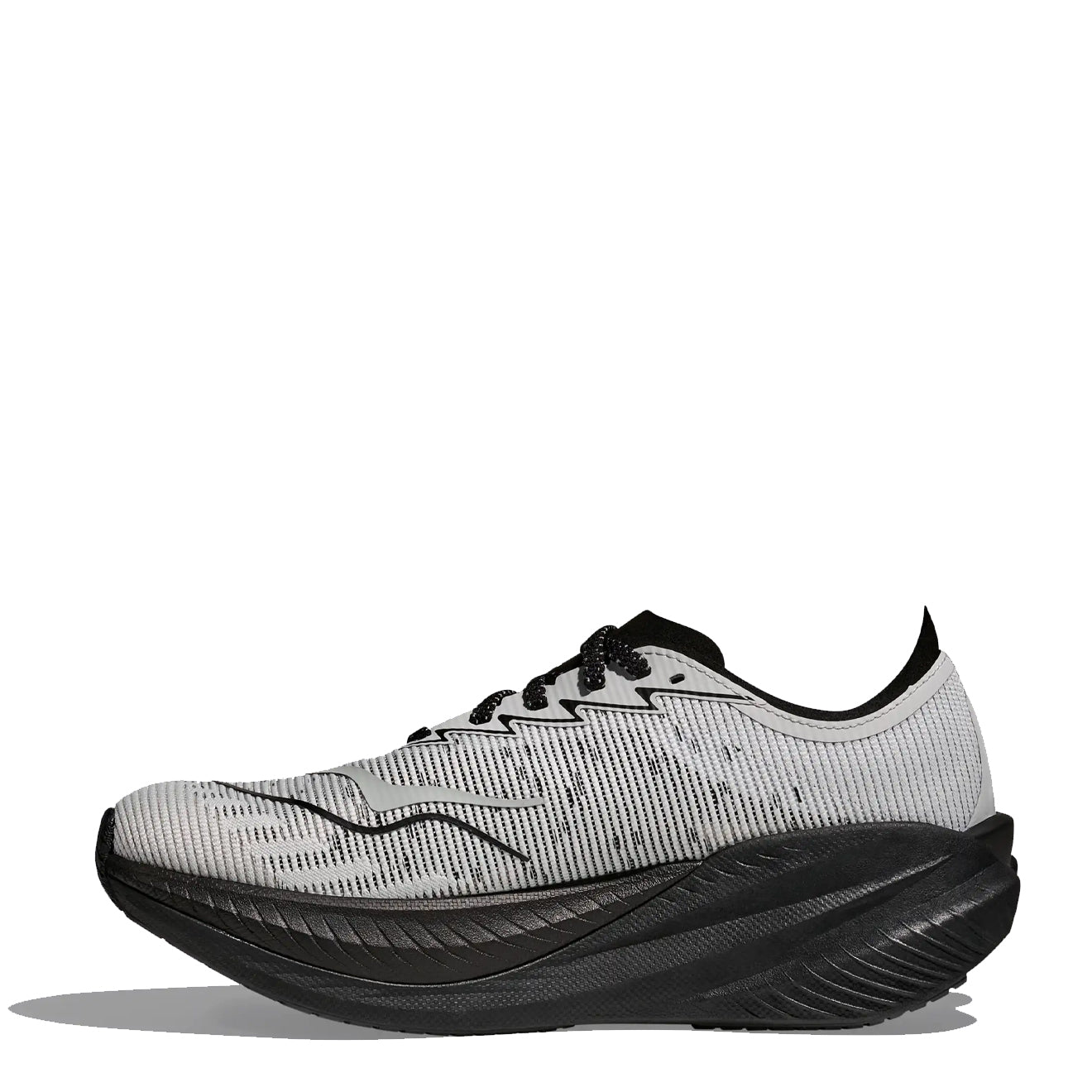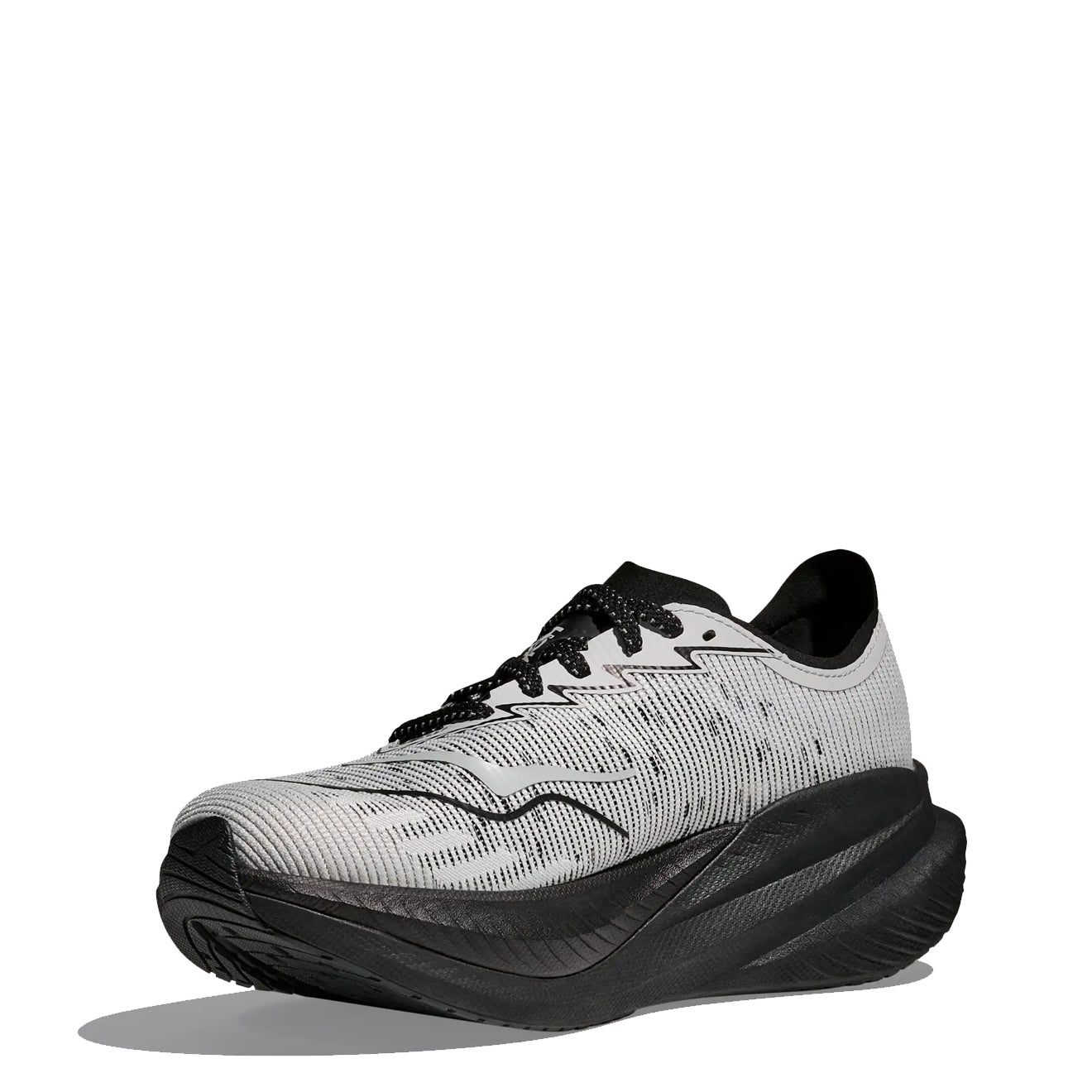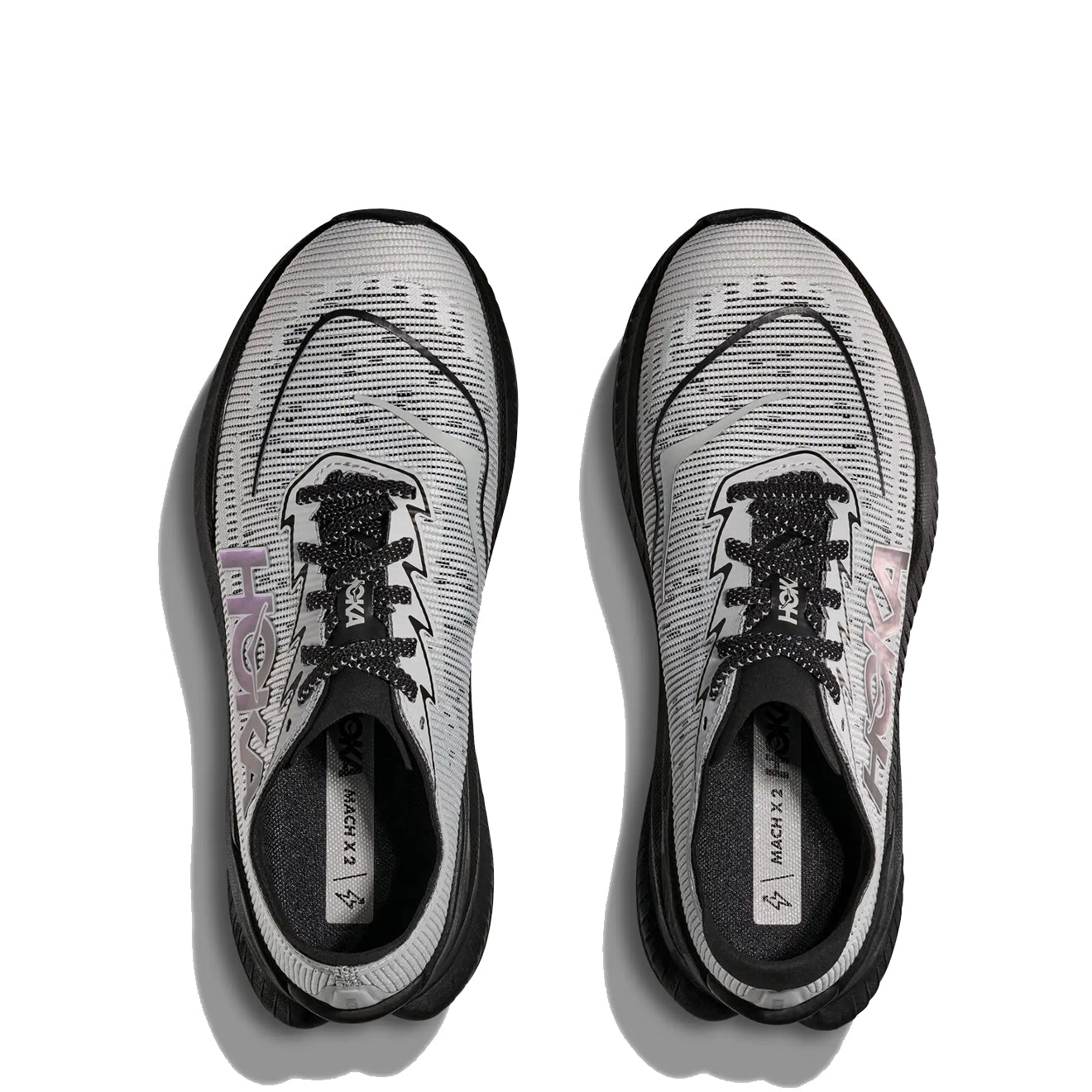 Der Hoka Mach X 2 Trainer in Schwarz / Stardust ist auf Geschwindigkeit ausgelegt und kombiniert rennsportinspirierte Geometrie mit modernster Technologie. Mit einer PEBA-beschichteten Zwischensohle und einer verlängerten Pebax®-Platte für verbesserten Vortrieb bietet dieser Schuh hervorragenden Halt und einen sanften, aggressiven Zehenabdruck. Das atmungsaktive, gewebte Obermaterial und der schlanke Kragen sorgen für Komfort und Leistung bei intensivem Tempotraining und machen ihn zur ultimativen Wahl für Training auf höchstem Niveau.