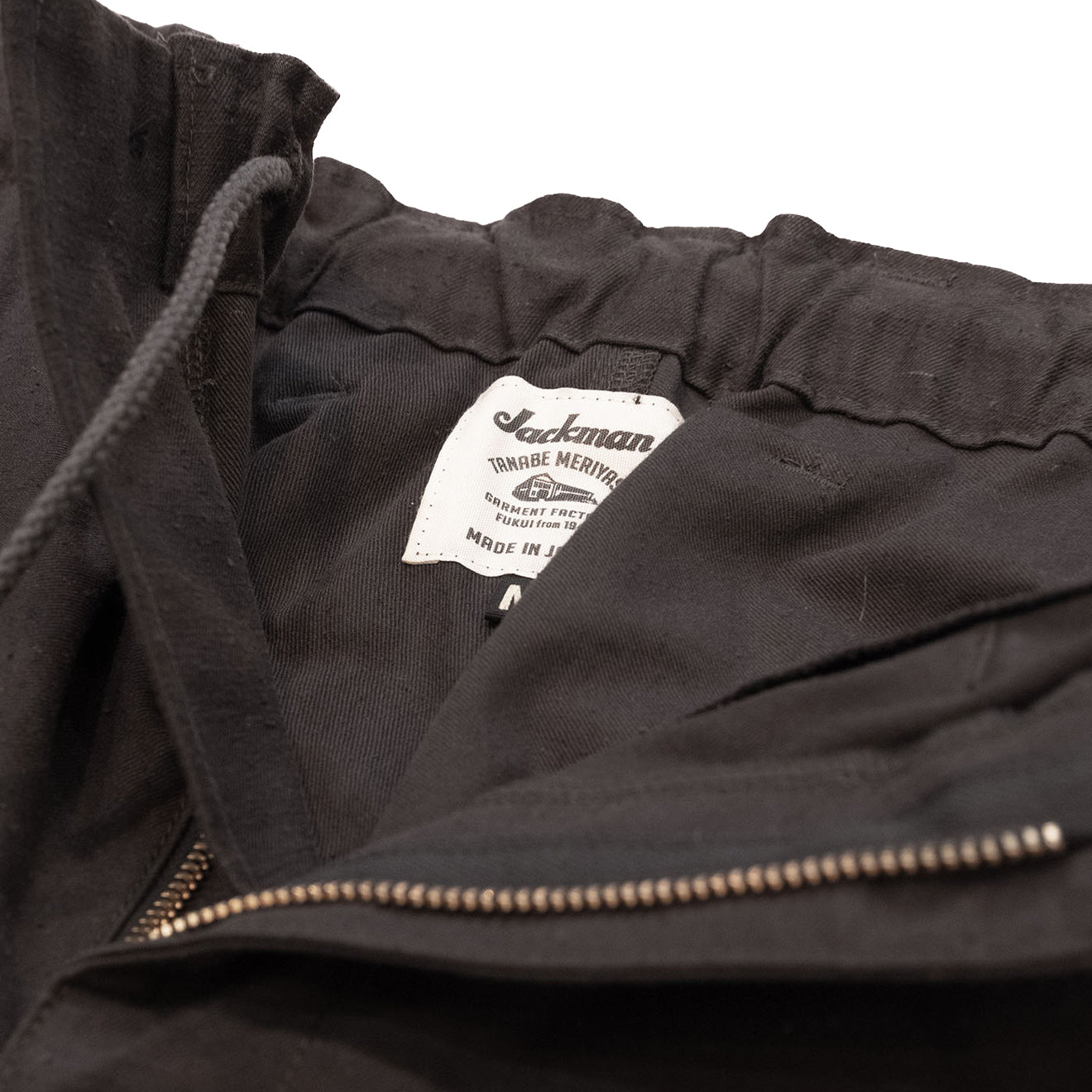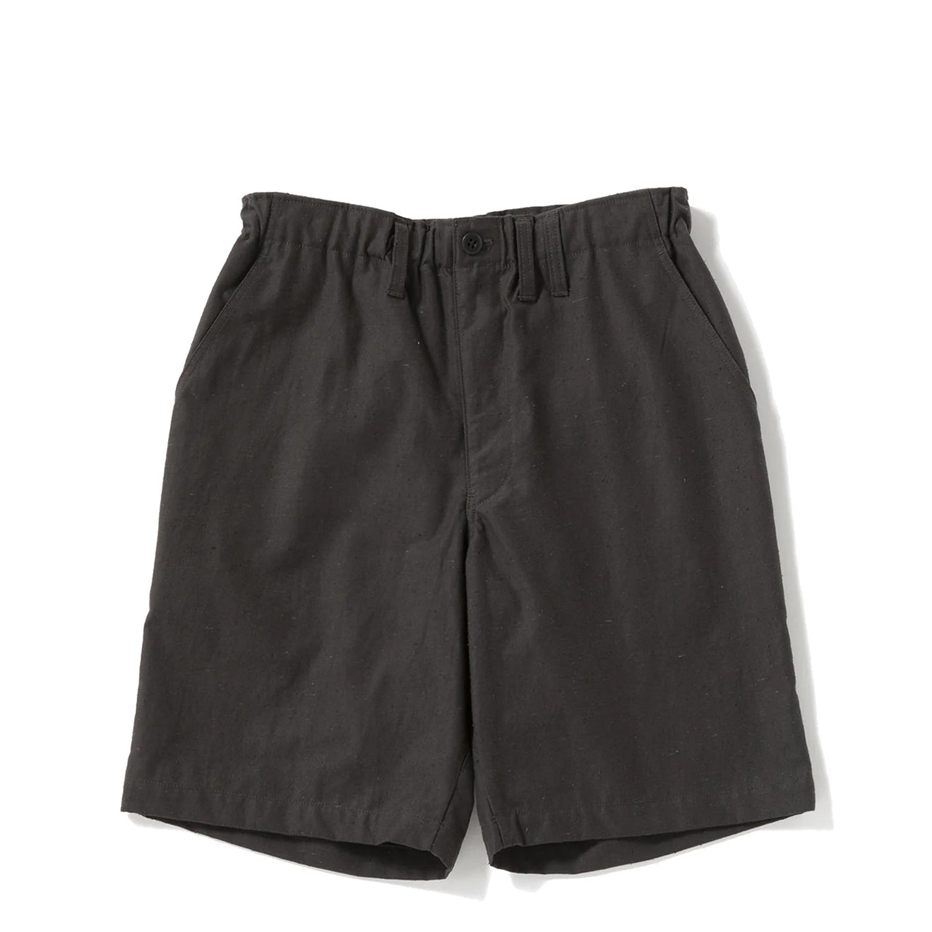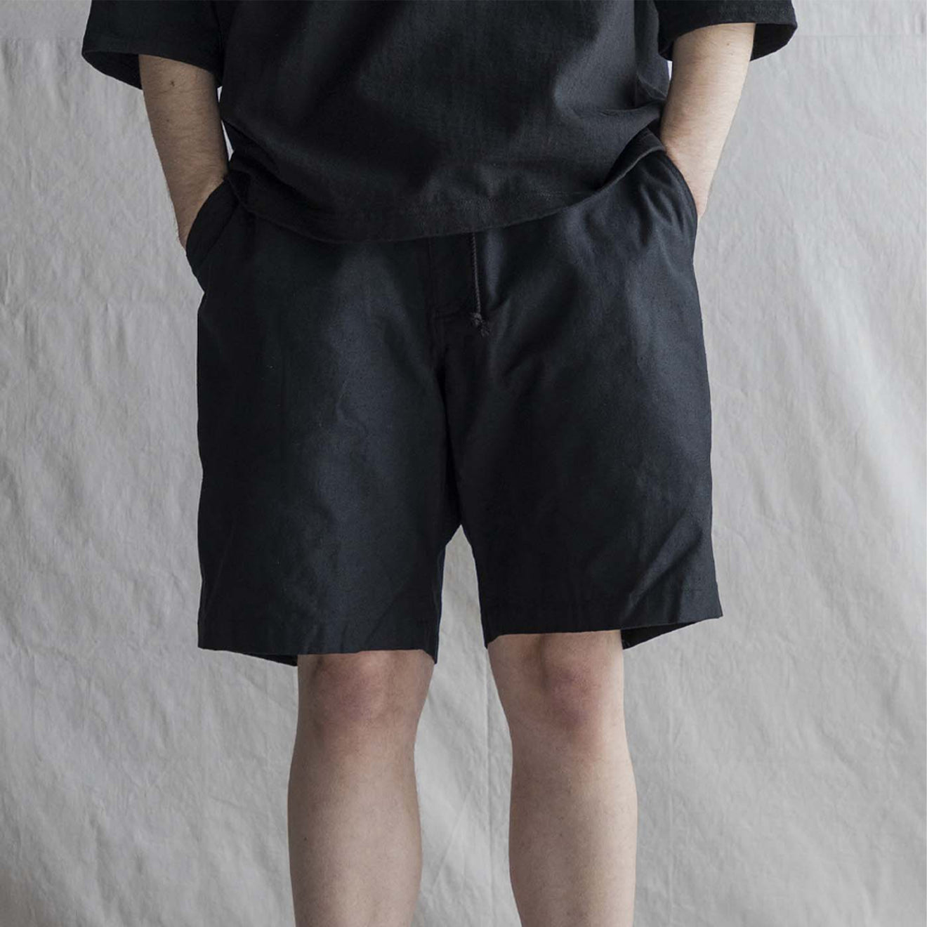 Jackman Back Nep Umps Shorts in Sumikuro / Tintenschwarz. Diese AMPUS-Shorts bestehen aus einem Stoffmaterial, das in Japan zu Nep-Garn gesponnen und aus Bio-Baumwolle gewebt wird.