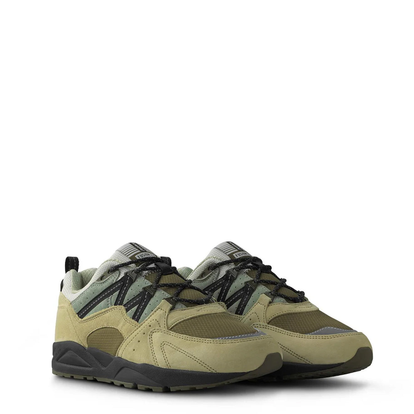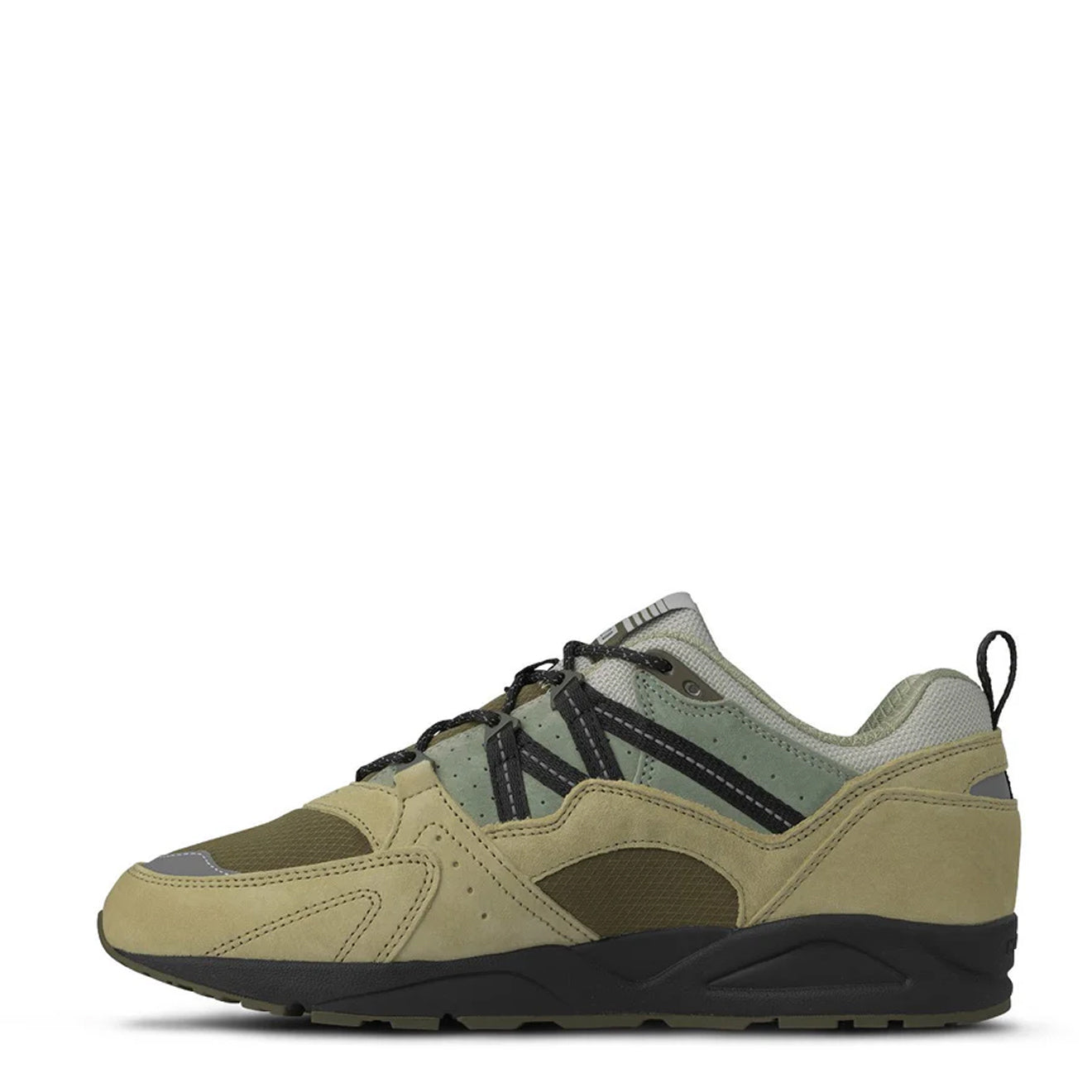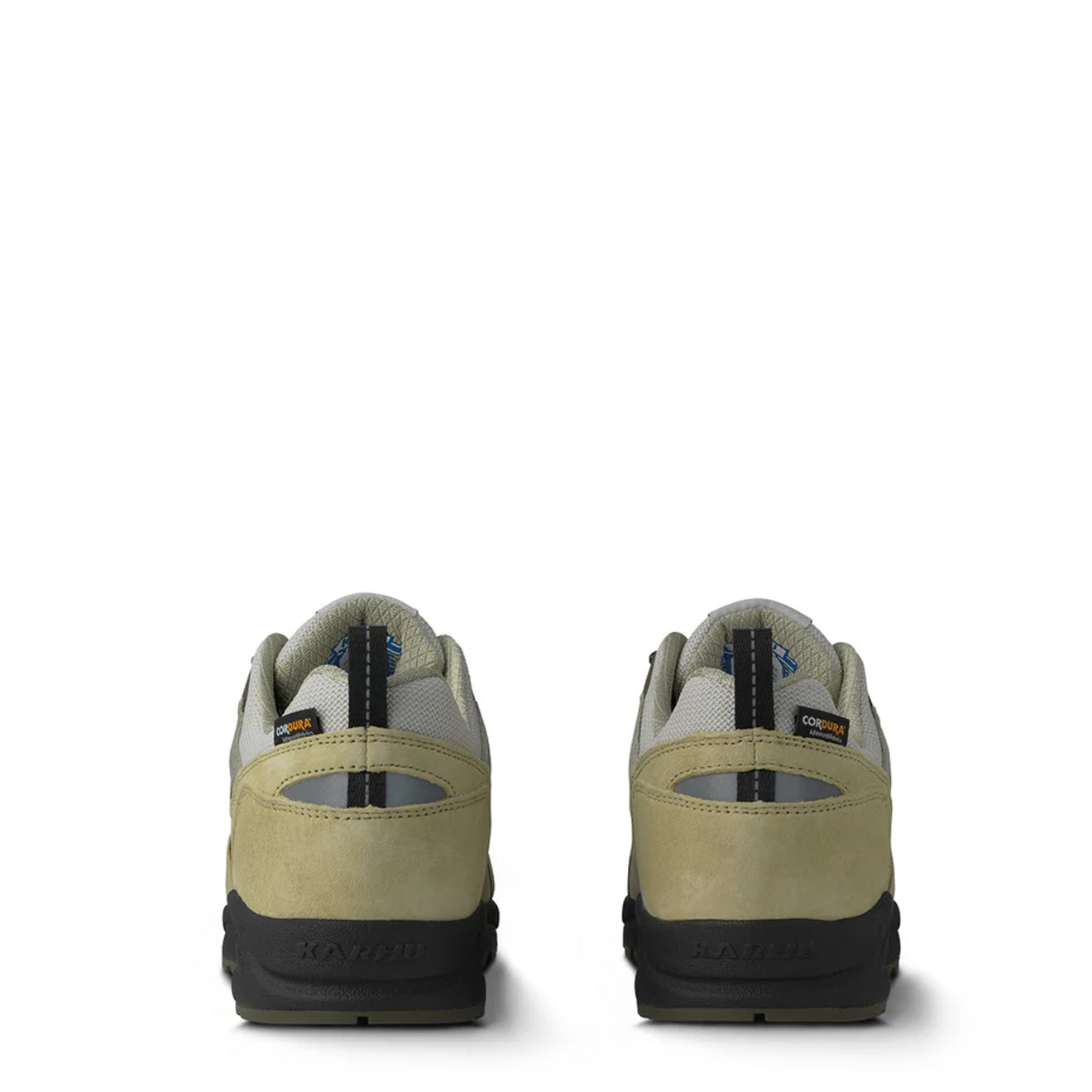 The Karhu Fusion 2.0 Trainer in Pale Olive Green / Jet Black, part of the KARHU Pub Quiz Pack, combines retro-inspired design with modern comfort. Crafted with durable CORDURA® fabric, it updates the original 1996 silhouette with premium materials and enhanced construction.