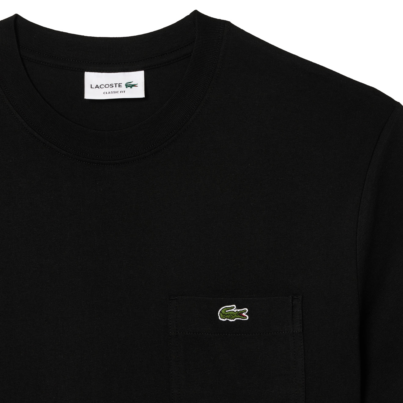 Normaler Preis €64,95Das Lacoste Baumwoll-T-Shirt mit Brusttasche in Schwarz besticht durch seinen klassischen Rundhalsausschnitt aus dicker Baumwolle für zusätzliche Wärme und Komfort. Die Brusttasche sorgt für Funktionalität, während das gestickte Krokodil-Logo für einen ikonischen Touch sorgt.