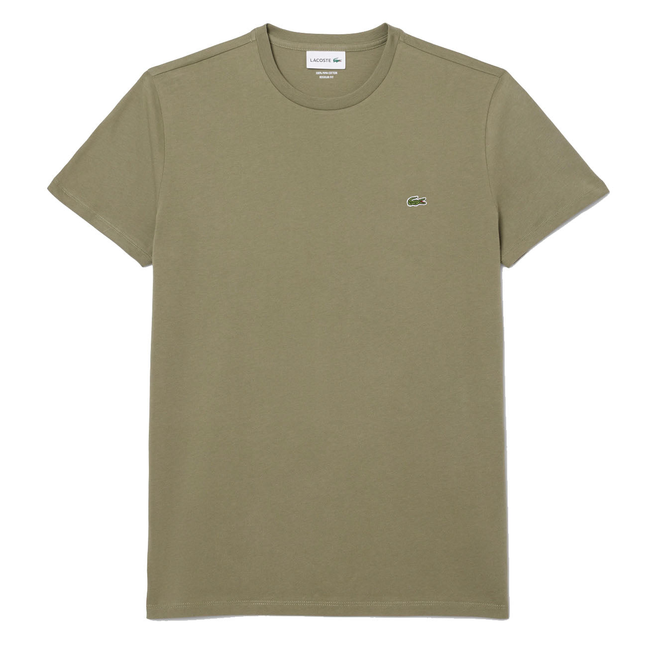 Normaler Preis €64,95Dieses unverzichtbare Lacoste Rundhals-Pima-T-Shirt in Khaki aus hochwertiger peruanischer Baumwolle besticht durch sein edles, leichtes und strapazierfähiges Design mit dezentem Glanz. Es ist die perfekte Ergänzung für Ihre Garderobe.