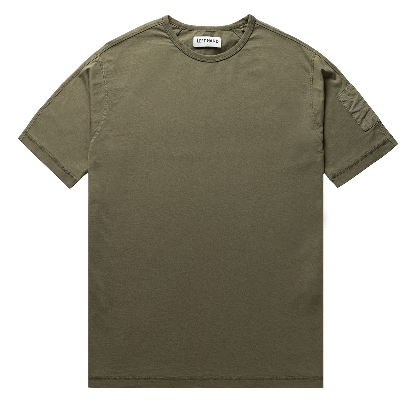 • Gewebter Baumwollaufnäher am linken Ärmel mit kleinem, farblich abgestimmtem „Linke Hand“-Logodruck