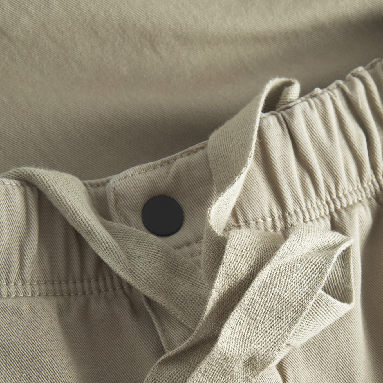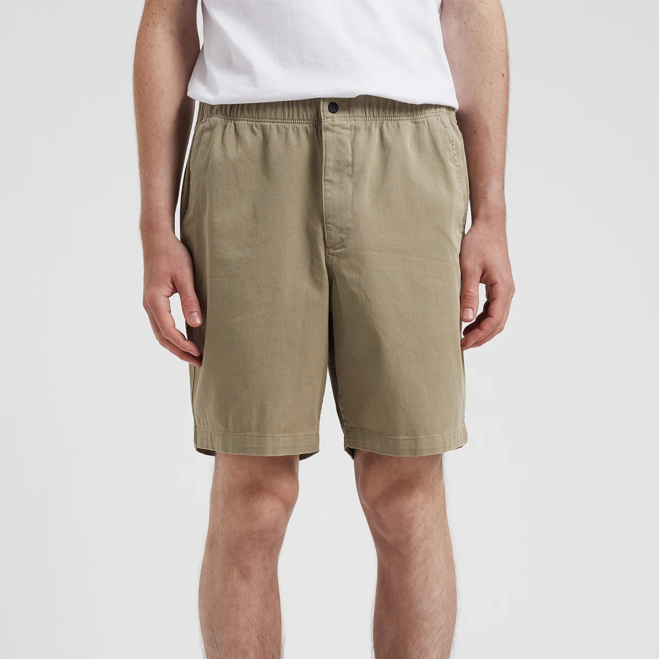 Die Ezra Relaxed Organic Stretch Twill Shorts von TheNorse Projects in Moosgrün zeichnen sich durch eine entspannte Passform mit weitem Bein aus elastischem Bio-Baumwoll-Twill aus. Die Shorts sind für eine satte Farbe stückgefärbt und verfügen über einen Reißverschluss, einen Druckknopfverschluss und einen Kordelzug in der Taille für eine bequeme und verstellbare Passform.
