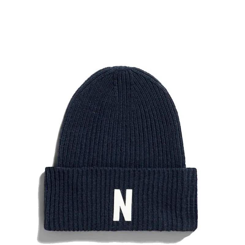 Normaler Preis €94,95 €47,95 Sparen 45% SonderpreisEine Beanie-Mütze, einlagig 1x1-Rippenmuster aus italienischer Merino-Lammwolle gestrickt. Mit einem gefilzten N auf der Falte versehen.