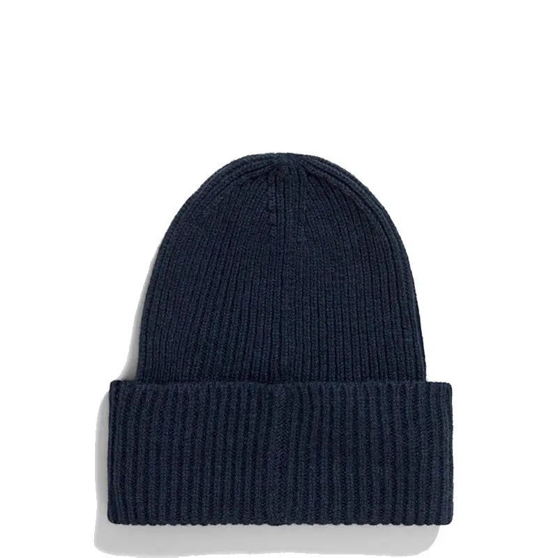 – Beanie aus Merino-Lammwolle mit Rippenmuster und Logo, Dunkelblau