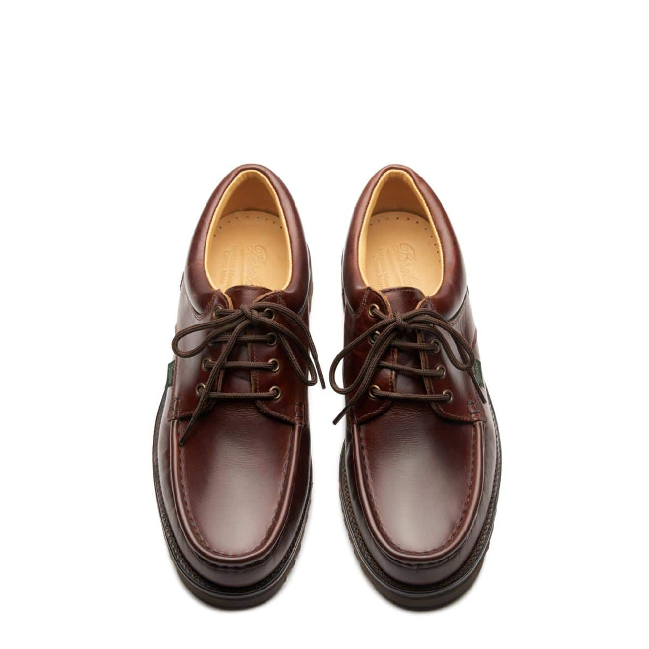 Der Paraboot Thiers Schuh in Lisse America ist ein vielseitiger Derby im Stil der 1960er Jahre. Er ist aus robustem Leder gefertigt, verfügt über ein Obermaterial mit Rohrnaht für eine dezente Struktur und einen Vier-Ösen-Verschluss für einen bequemen Sitz. Vollständig mit Leder gefüttert und mit einer Blake-Stitch-Sohle versehen, ist er sowohl strapazierfähig als auch angenehm zu tragen. Eine Sportsohle aus echtem Gummi sorgt für Halt und einen etwas klobigeren Look und macht ihn zu einer edlen und zugleich unverwechselbaren Wahl für jede Garderobe.