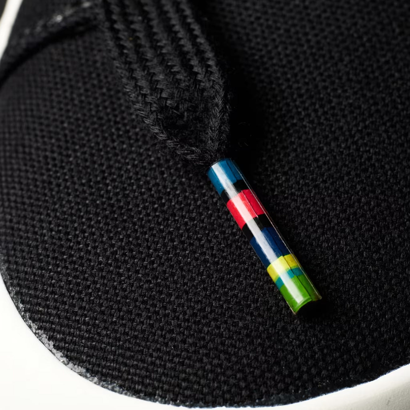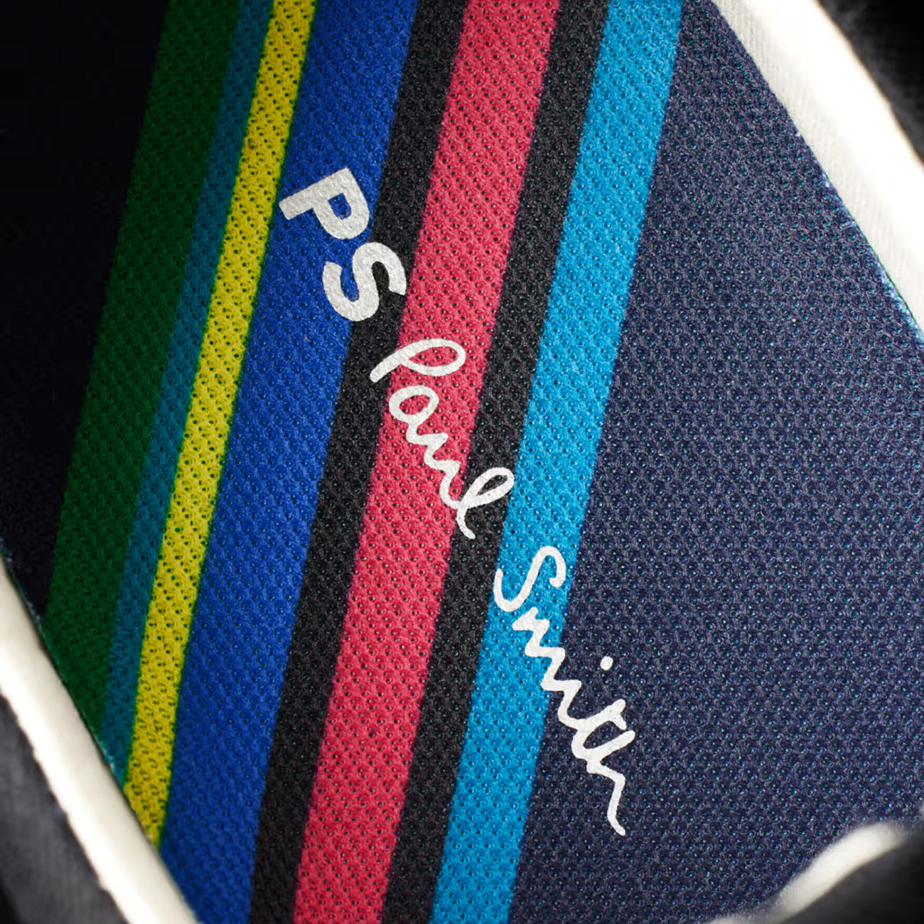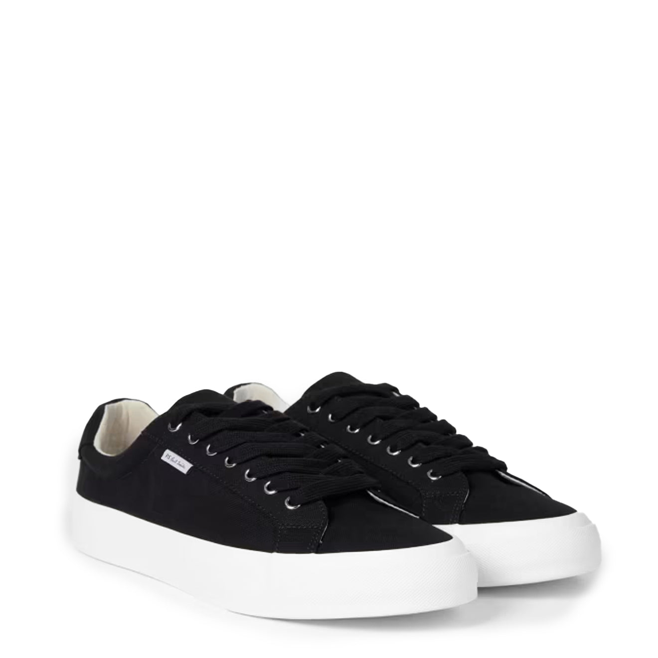 Die Paul Smith Amos Canvas-Sneaker in Schwarz bestehen aus 100 % Baumwoll-Canvas und bestechen durch ihr klassisches Design mit vulkanisierten weißen Gummisohlen und farblich abgestimmten Schnürsenkeln. Ein PS Paul Smith-Logo an der Seite sorgt für ein dezentes Branding, während das „Sports Stripe“-Detail auf der Innensohle für einen charakteristischen Farbtupfer sorgt.